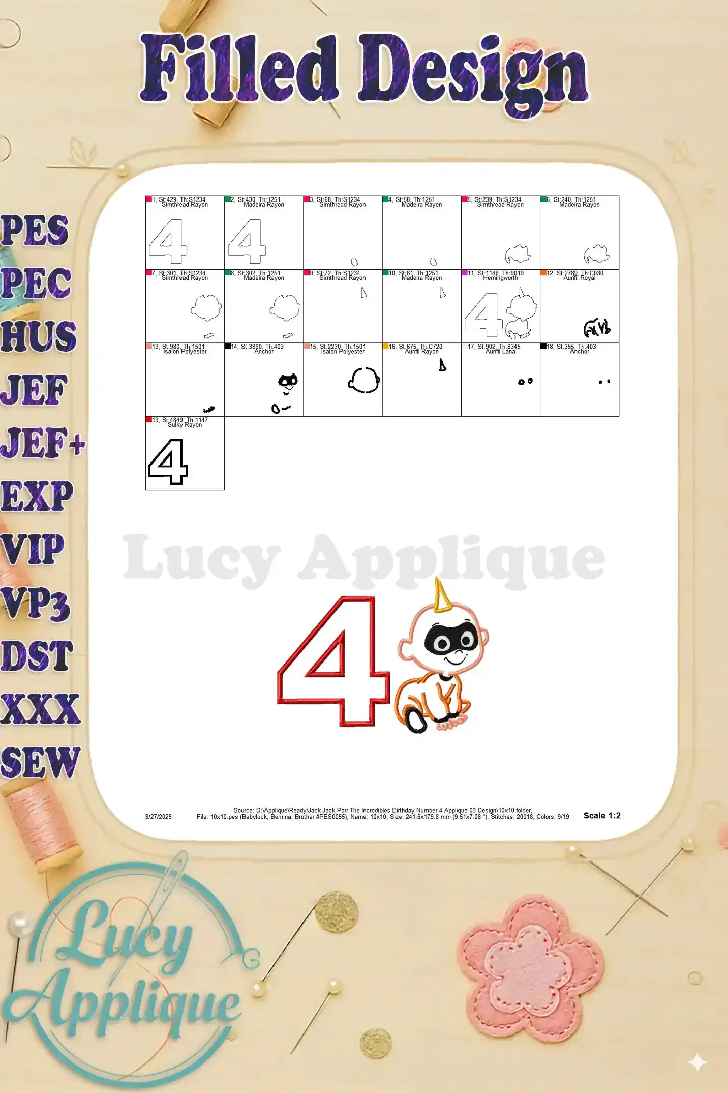 Jack Jack Parr The Incredibles Birthday Number 4 Applique 03 Design – Instant Download