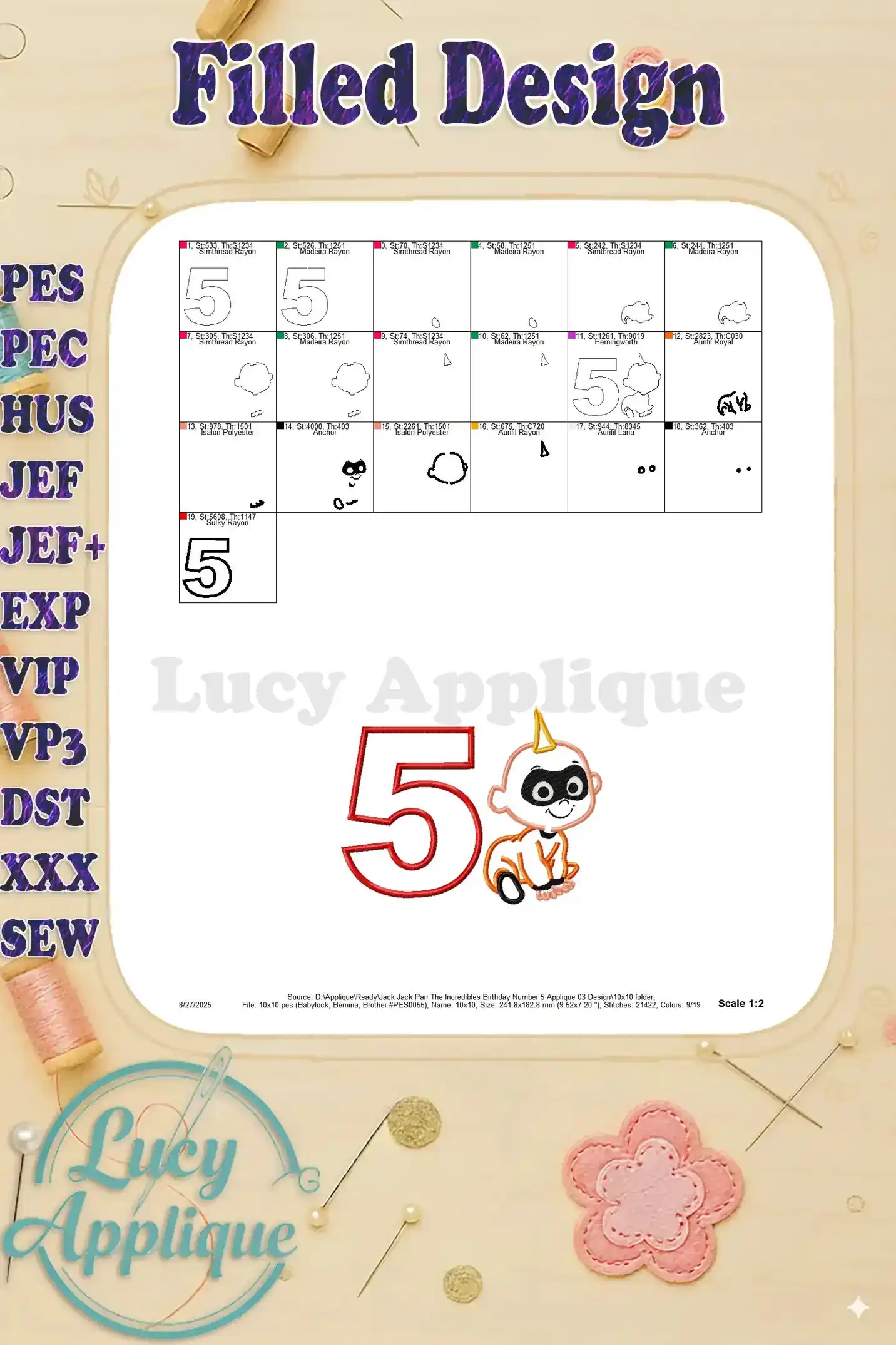 Jack Jack Parr The Incredibles Birthday Number 5 Applique 03 Design – Instant Download