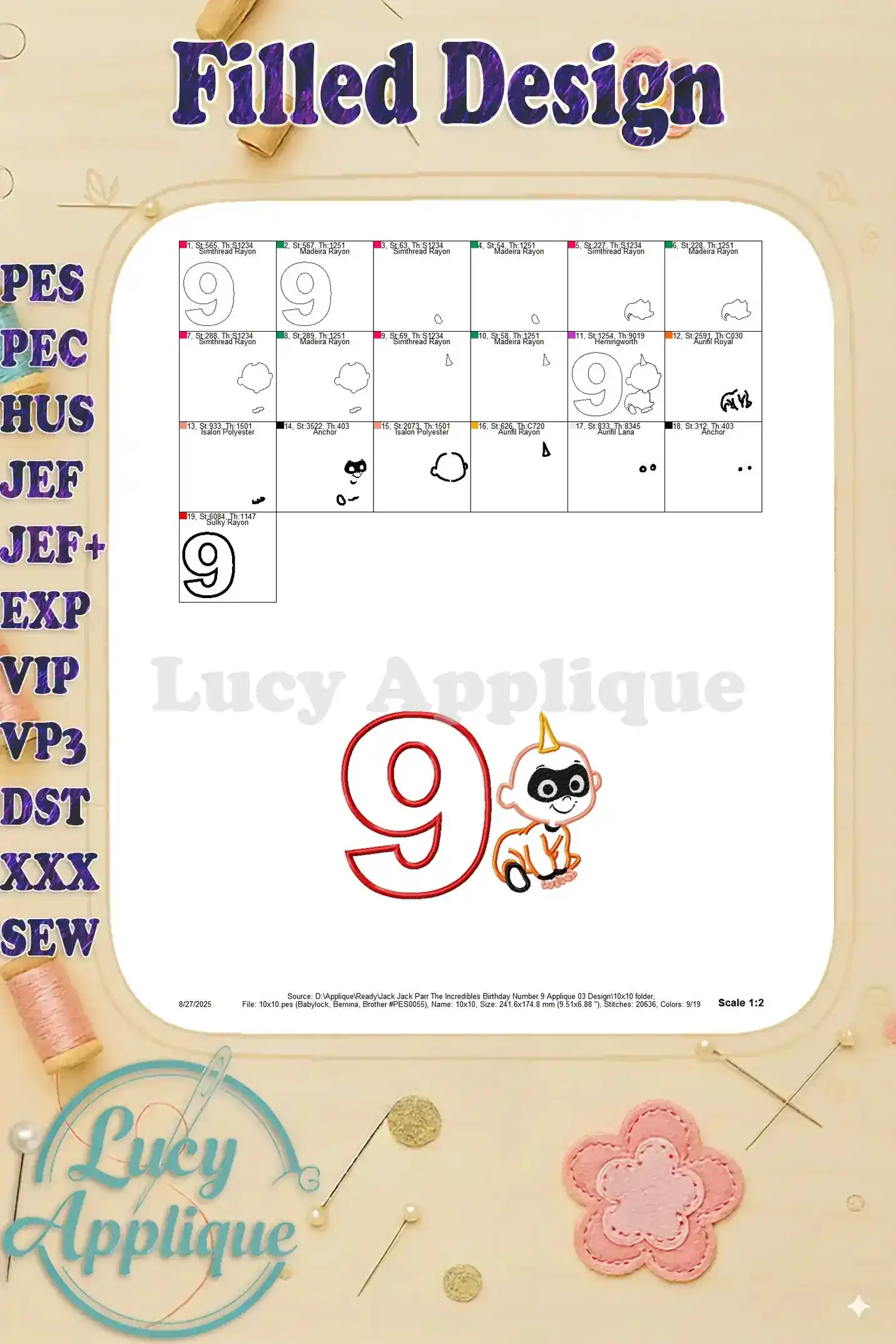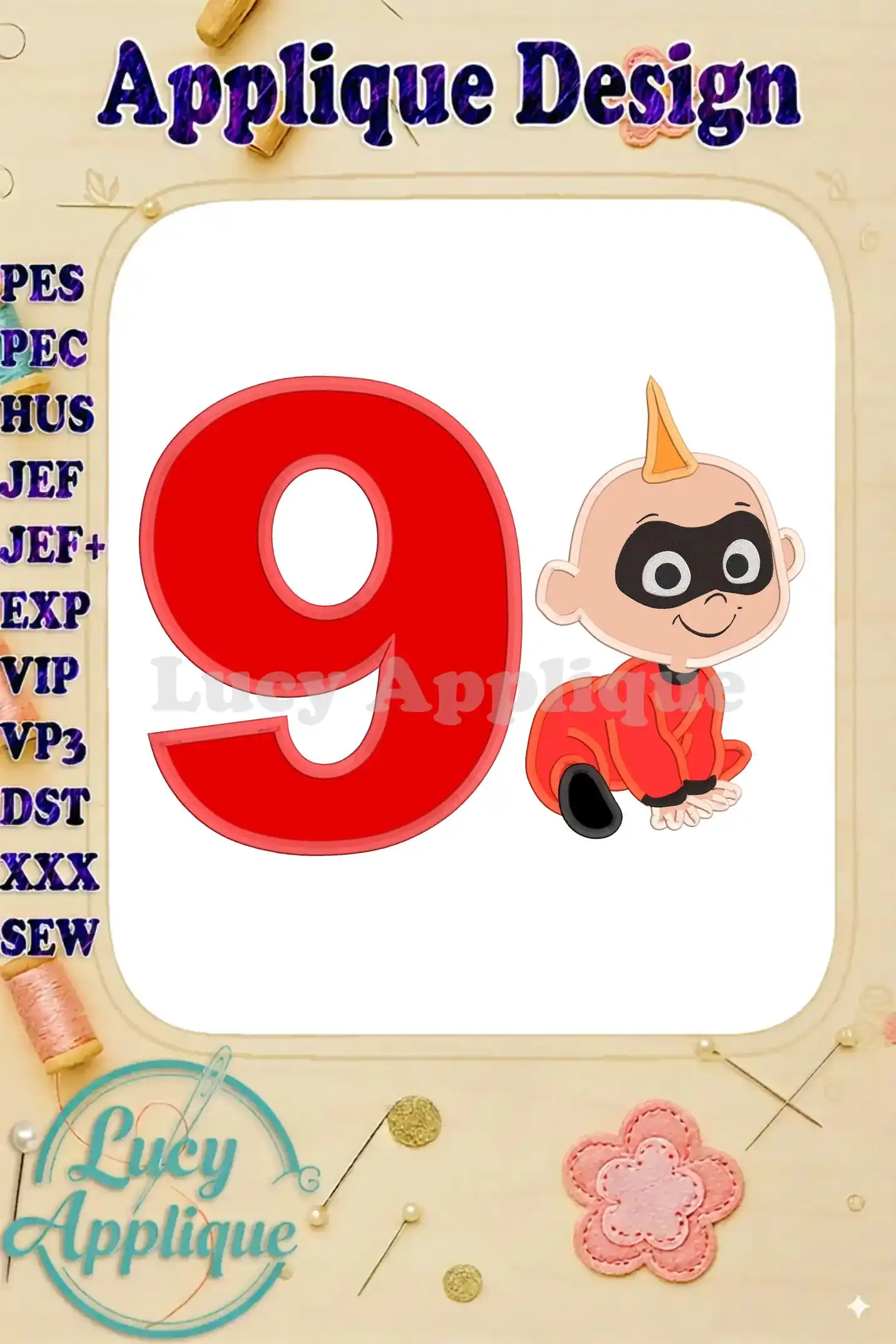 Jack Jack Parr The Incredibles Birthday Number 9 Applique 03 Design – Instant Download