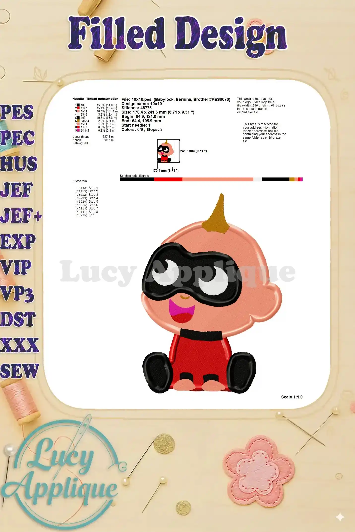 Jack Jack Parr The Incredibles Fill Machine 01 Embroidery Design – Instant Download