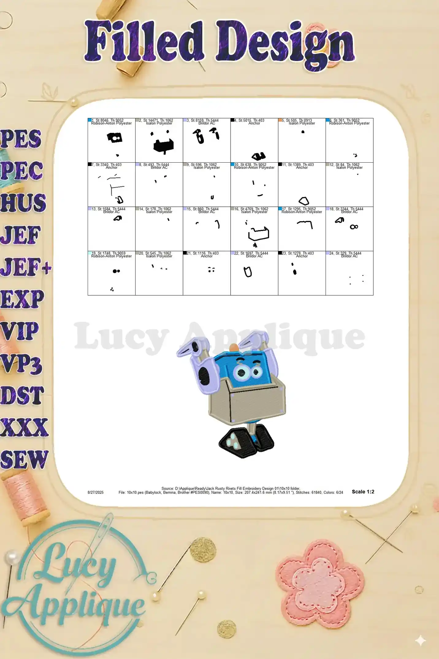 Jack Rusty Rivets Fill Embroidery Design 01 – Instant Download