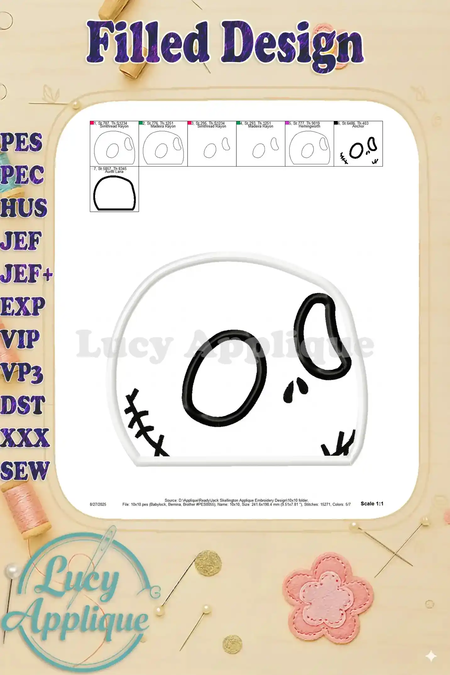 Jack Skellington Applique Embroidery Design – Instant Download