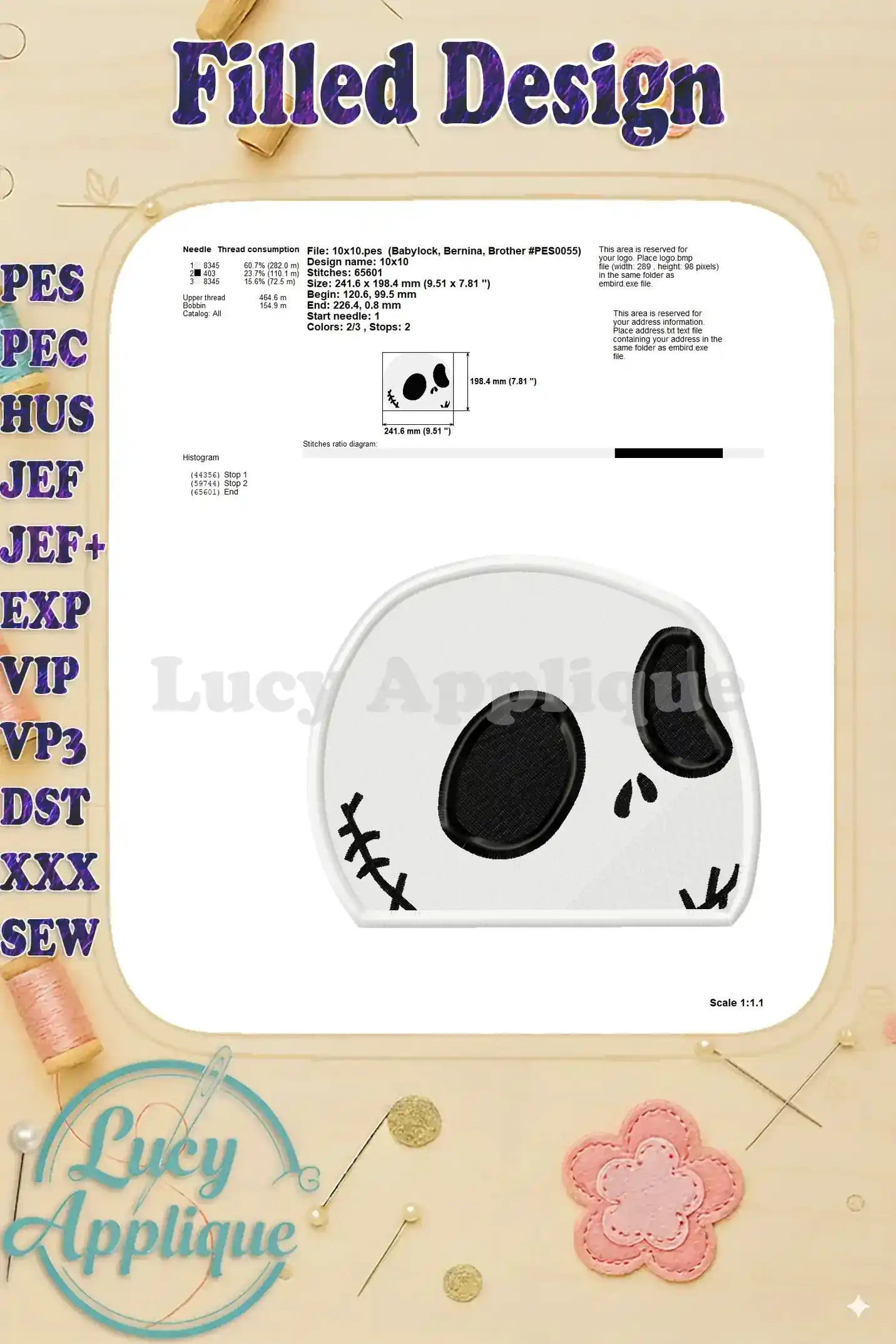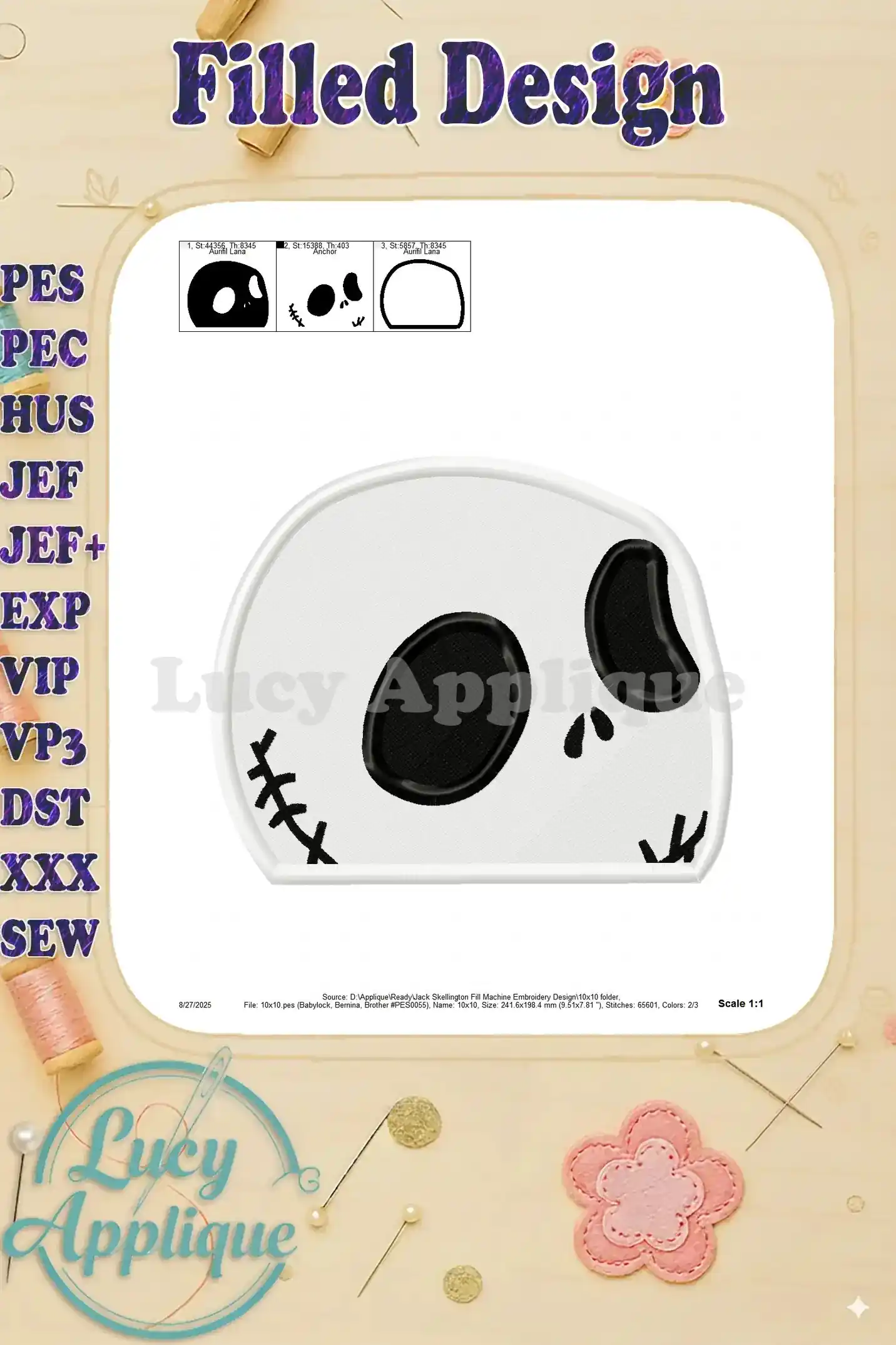 Jack Skellington Fill Machine Embroidery Design – Instant Download