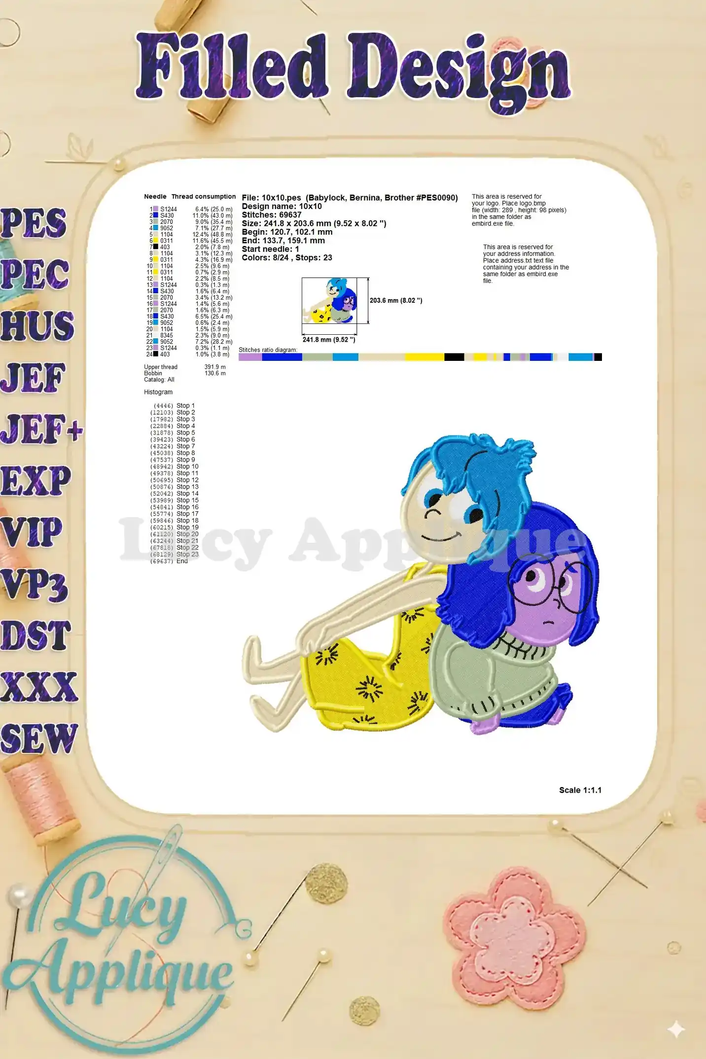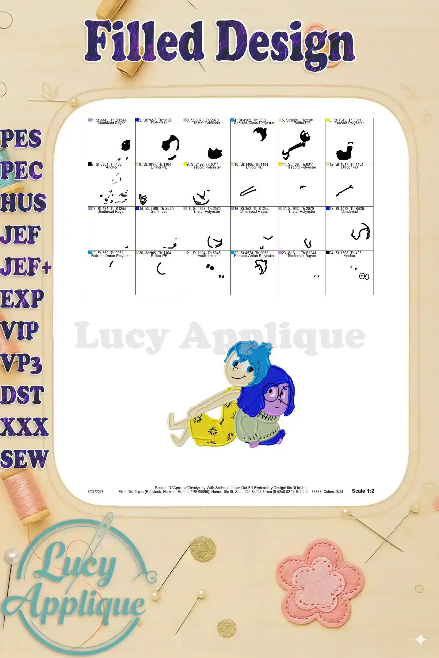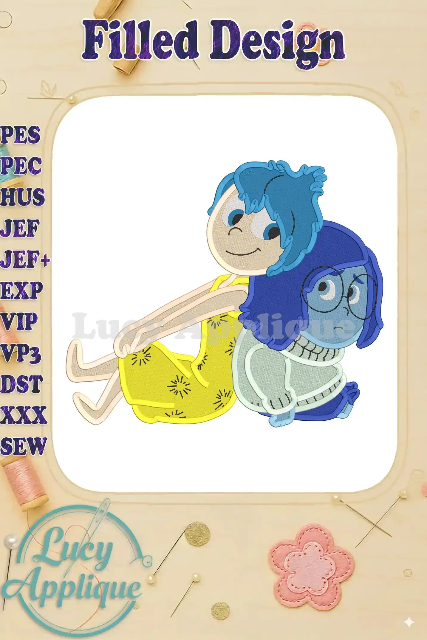 Joy With Sadness Inside Out Fill Embroidery Design – Instant Download