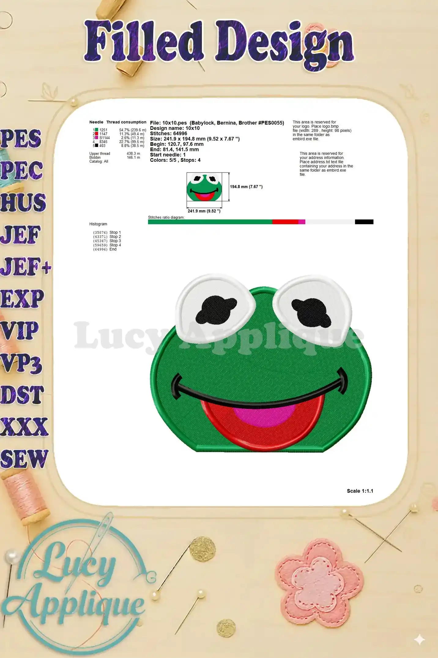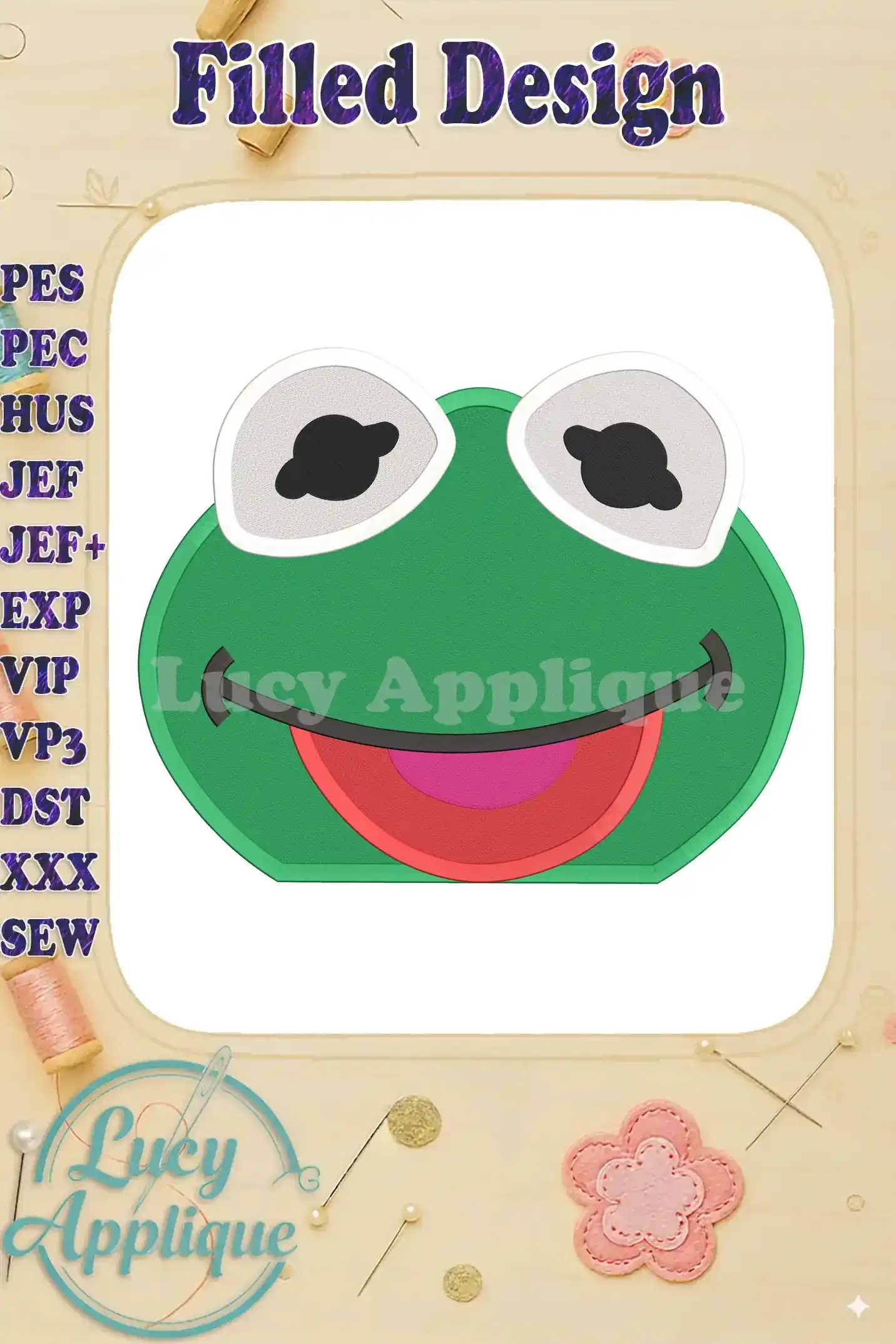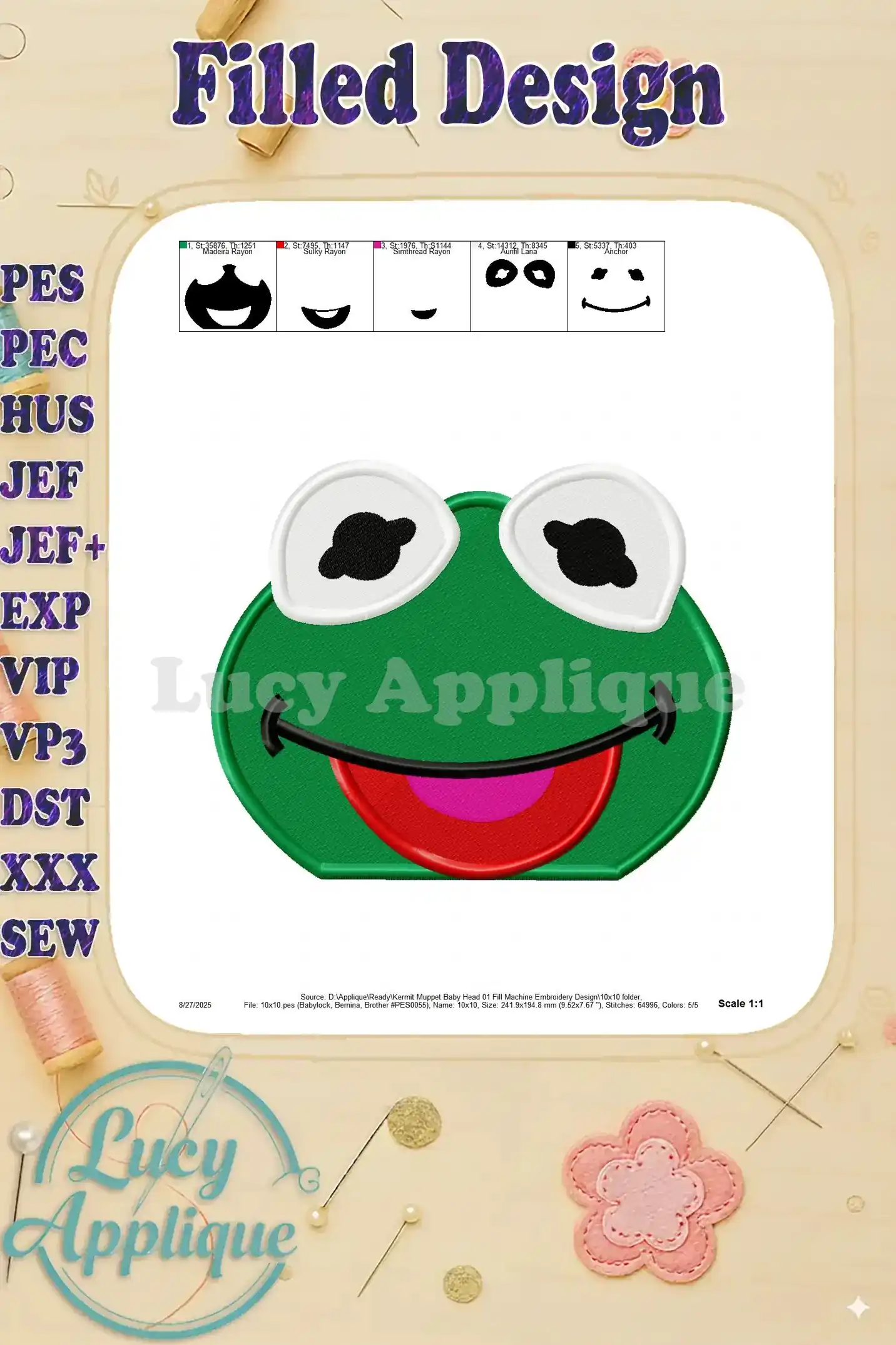 Kermit Muppet Baby Head 01 Fill Machine Embroidery Design – Instant Download