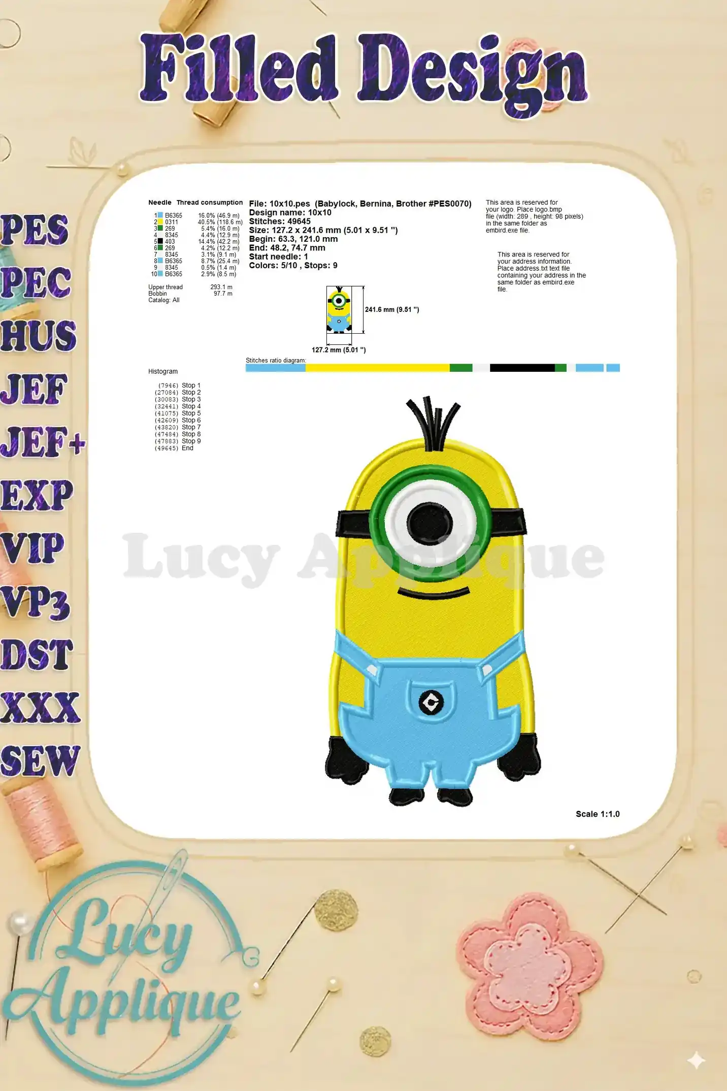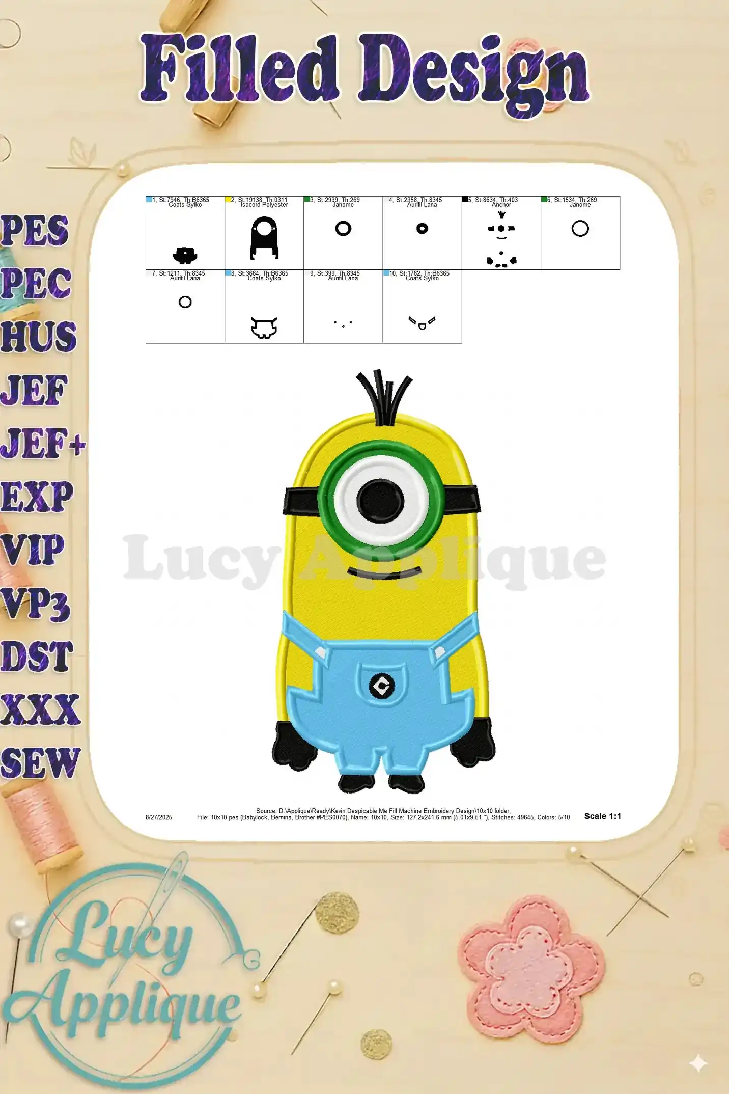 Kevin Despicable Me Fill Machine Embroidery Design – Instant Download