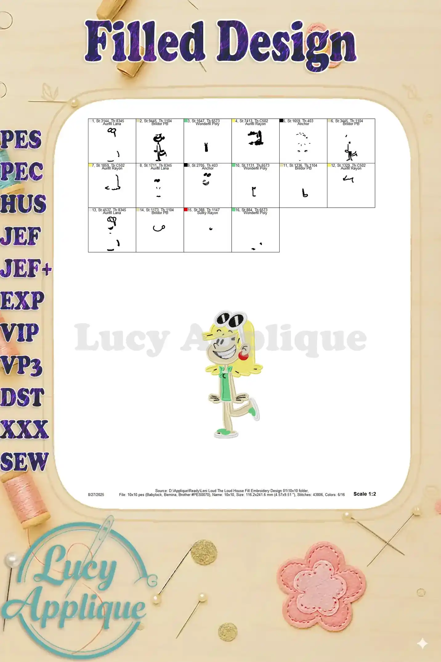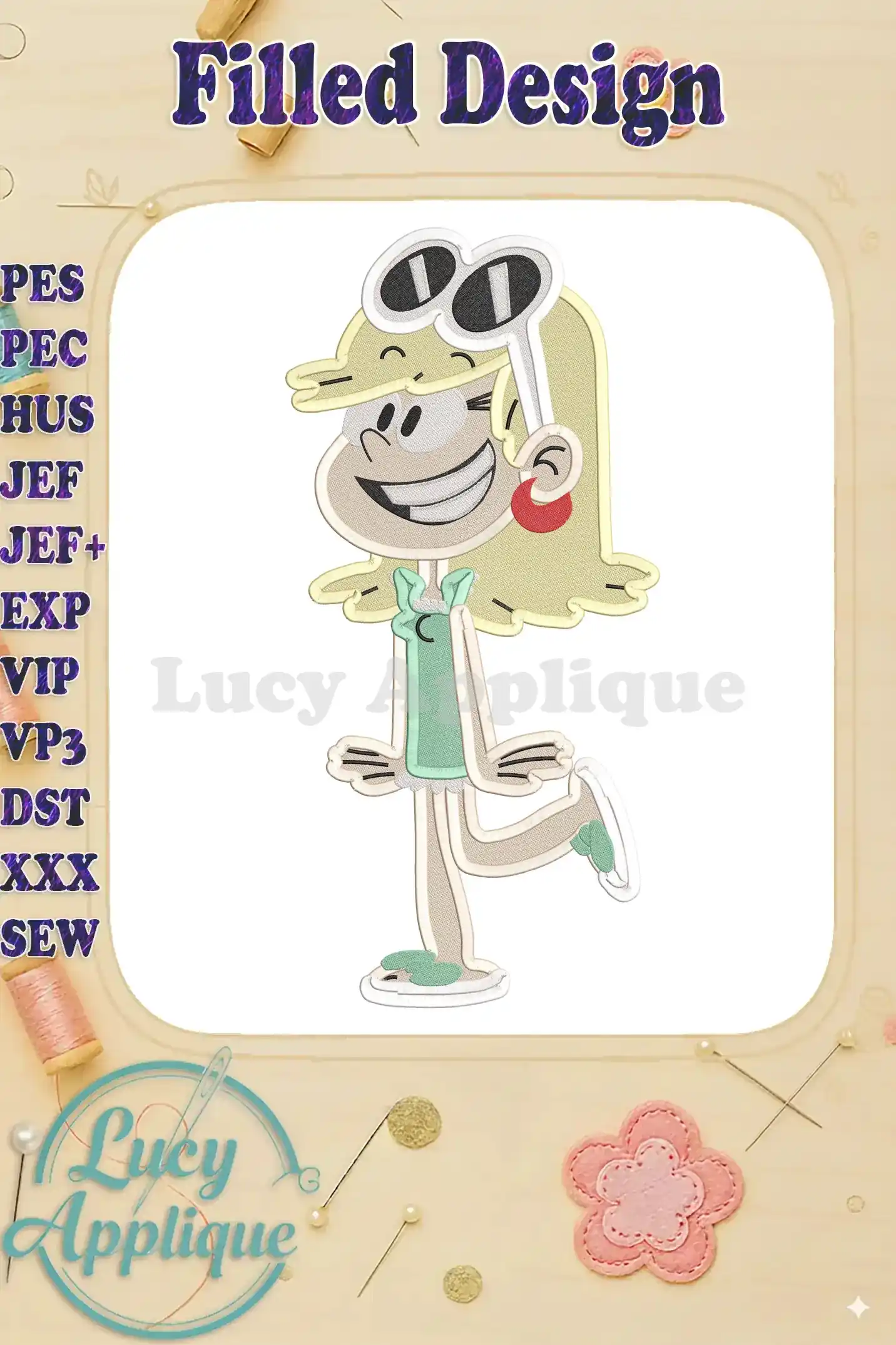 Leni Loud The Loud House Fill Embroidery Design 01 – Instant Download