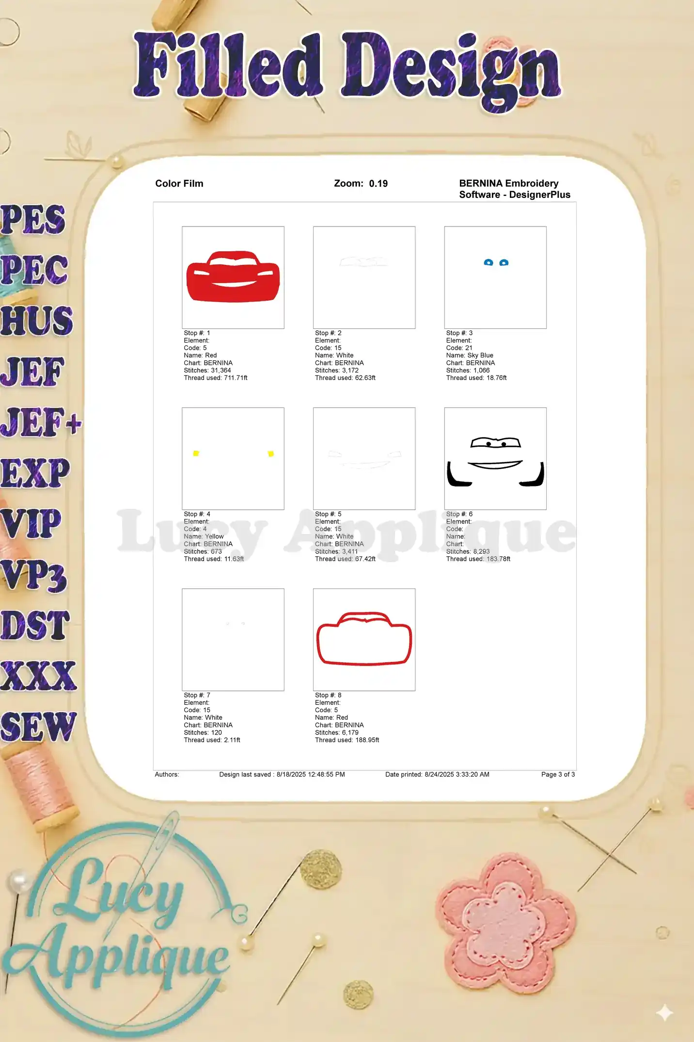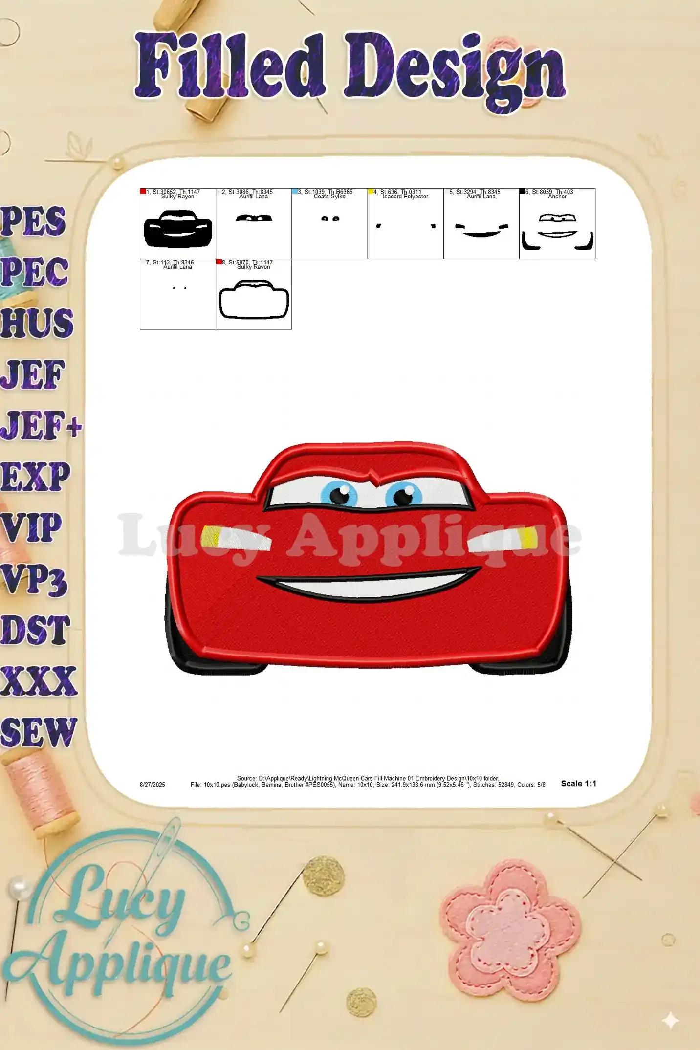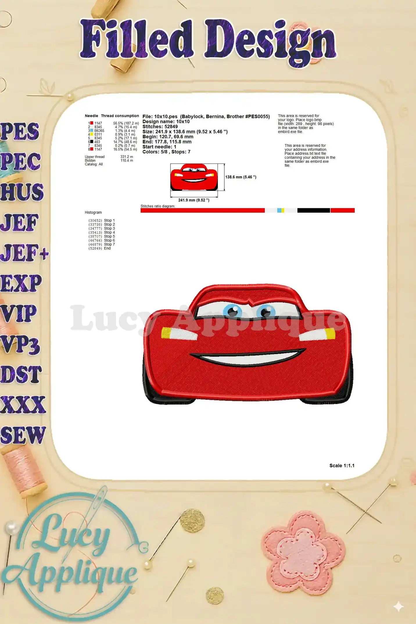 Lightning McQueen Cars Fill Machine 01 Embroidery Design – Instant Download