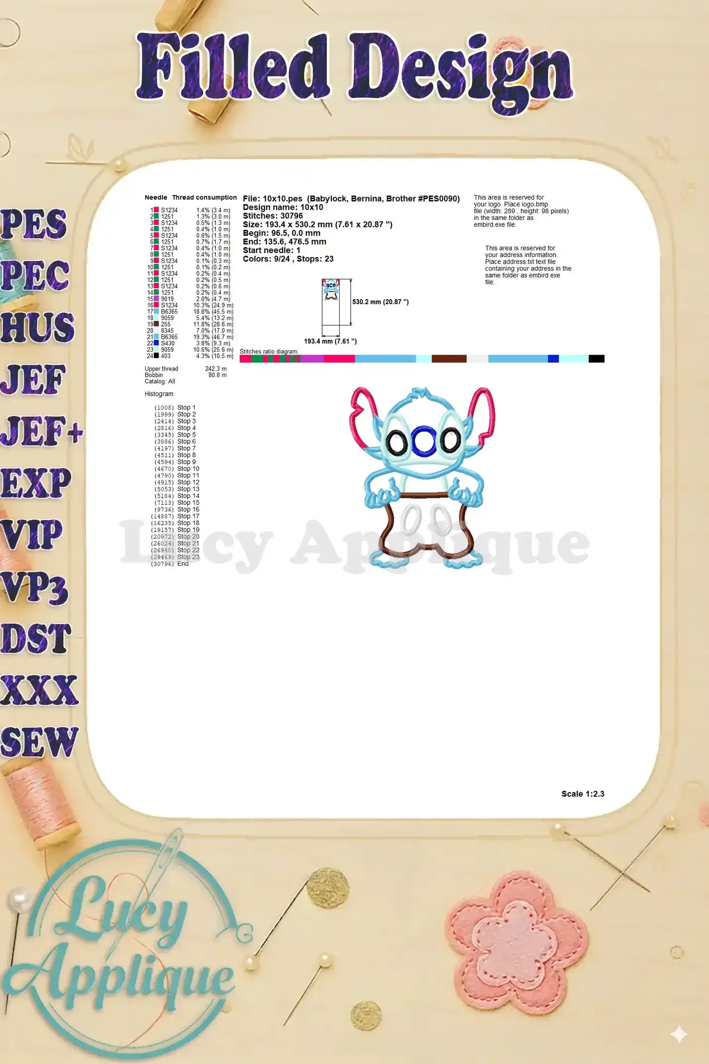 Lilo and Stitch Applique 02 Embroidery Design1 – Instant Download