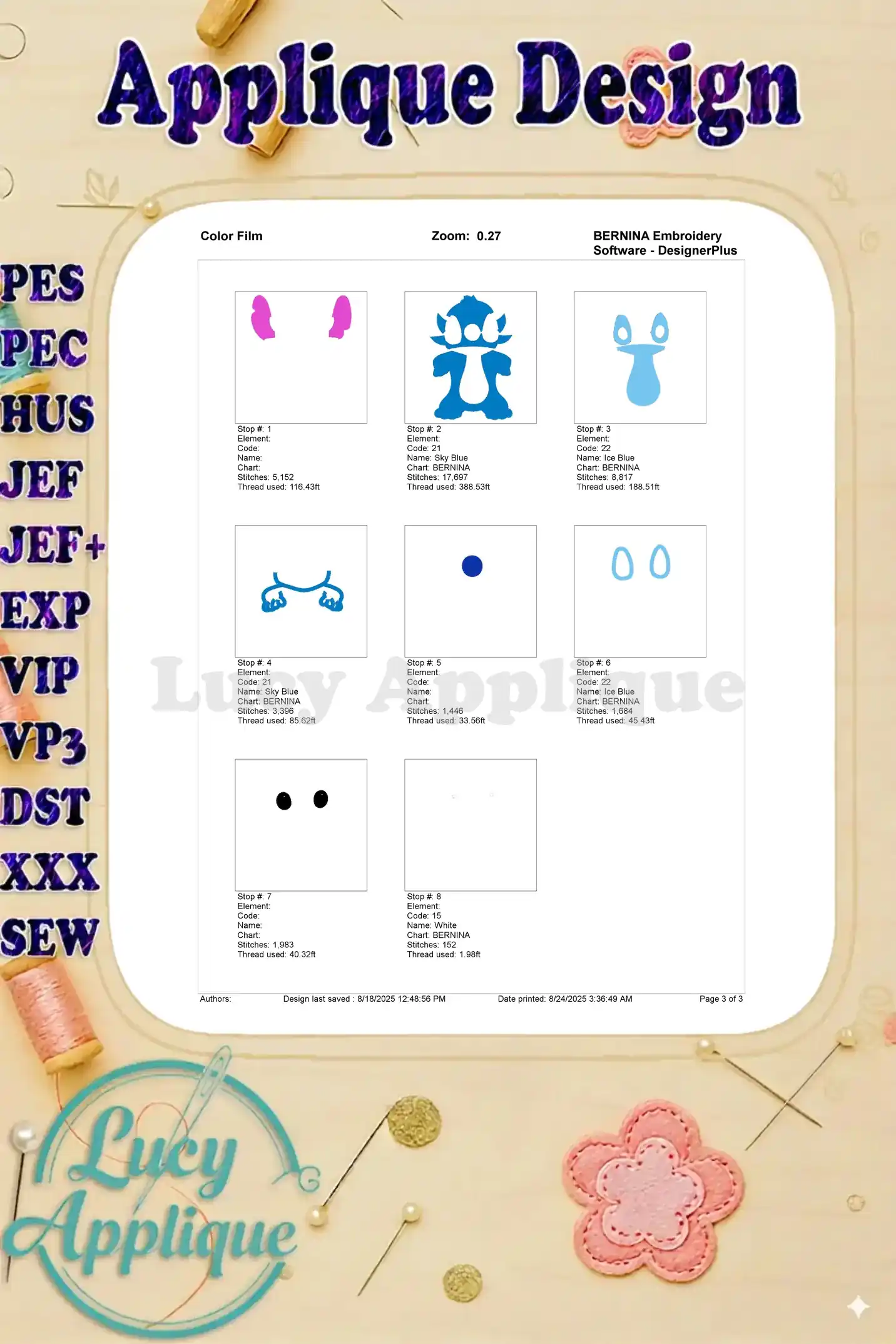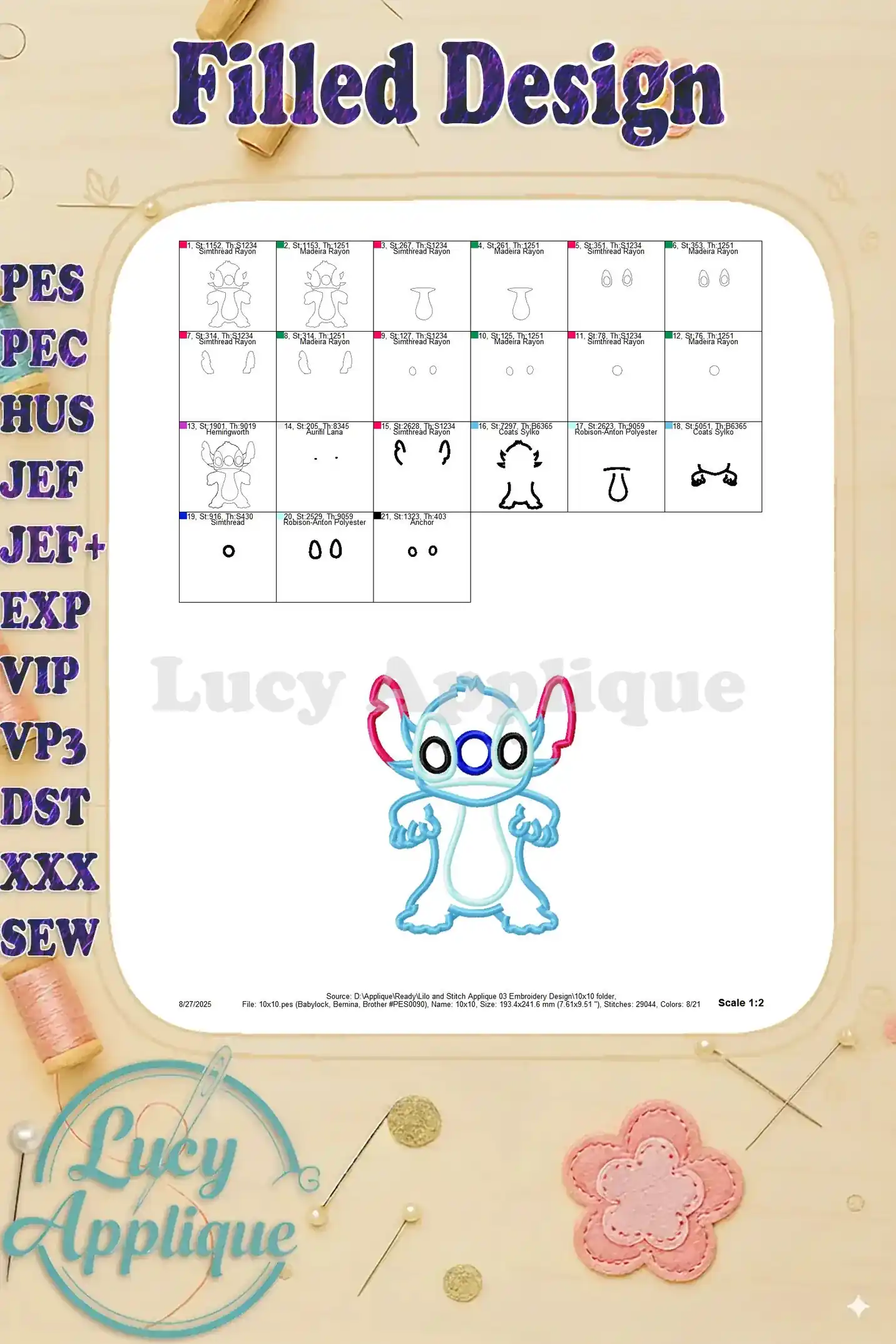 Lilo and Stitch Applique 03 Embroidery Design – Instant Download