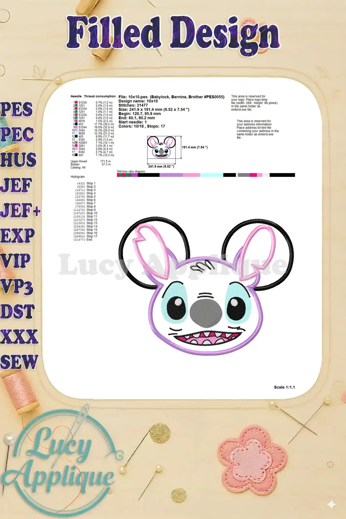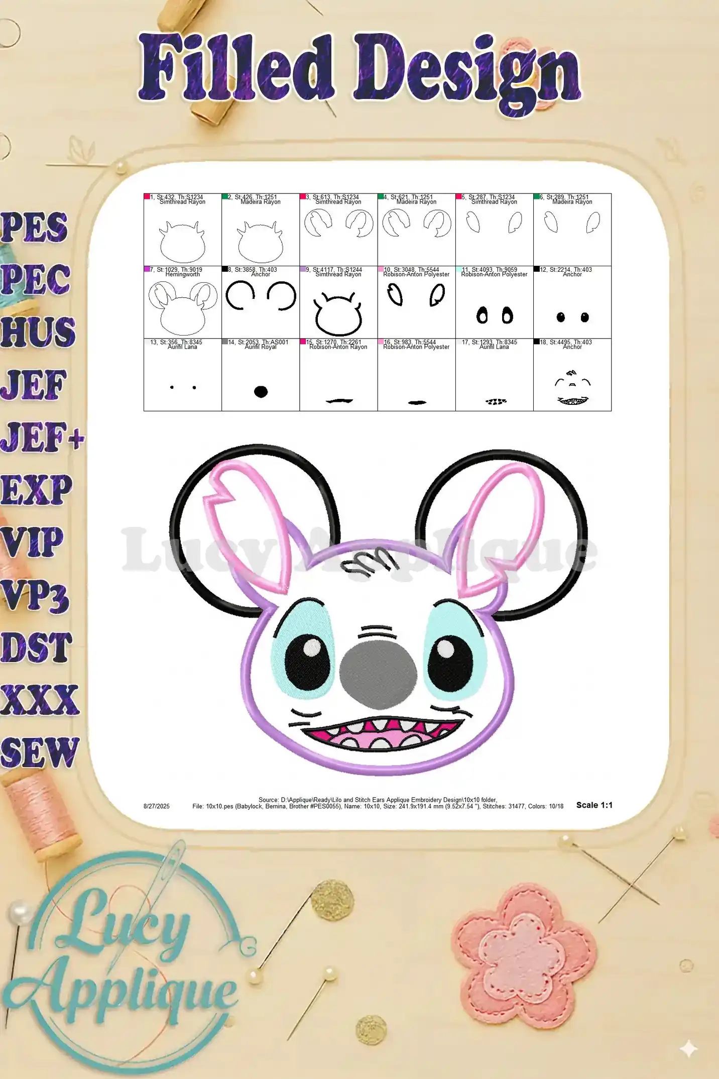 Lilo and Stitch Ears Applique Embroidery Design – Instant Download