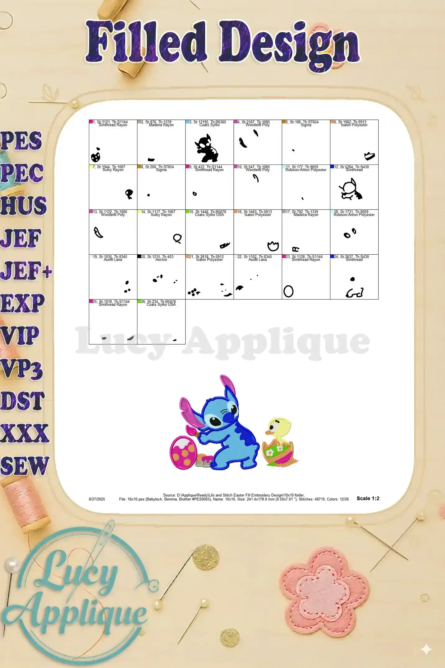 Lilo and Stitch Easter Fill Embroidery Design – Instant Download