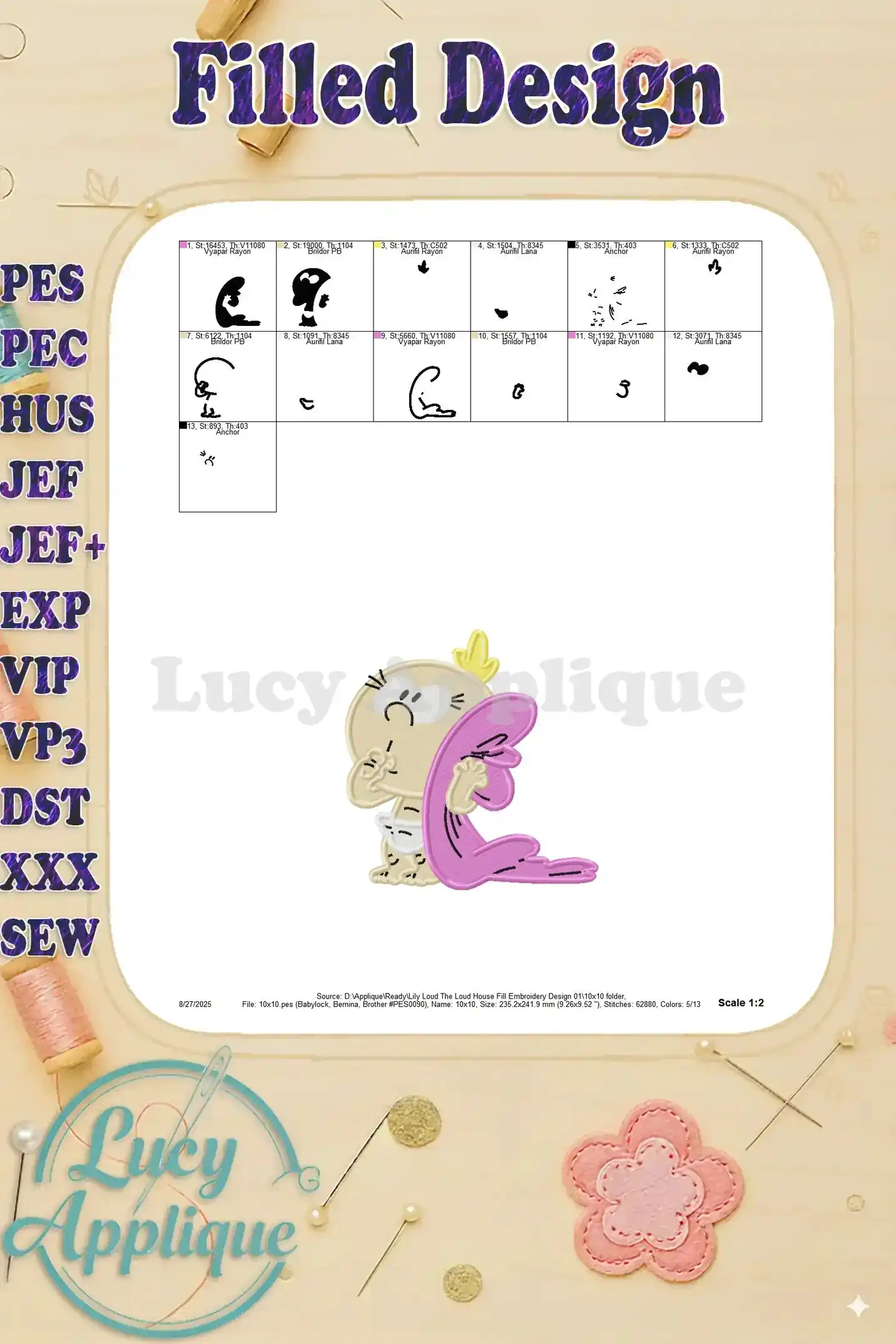 Lily Loud The Loud House Fill Embroidery Design 01 – Instant Download