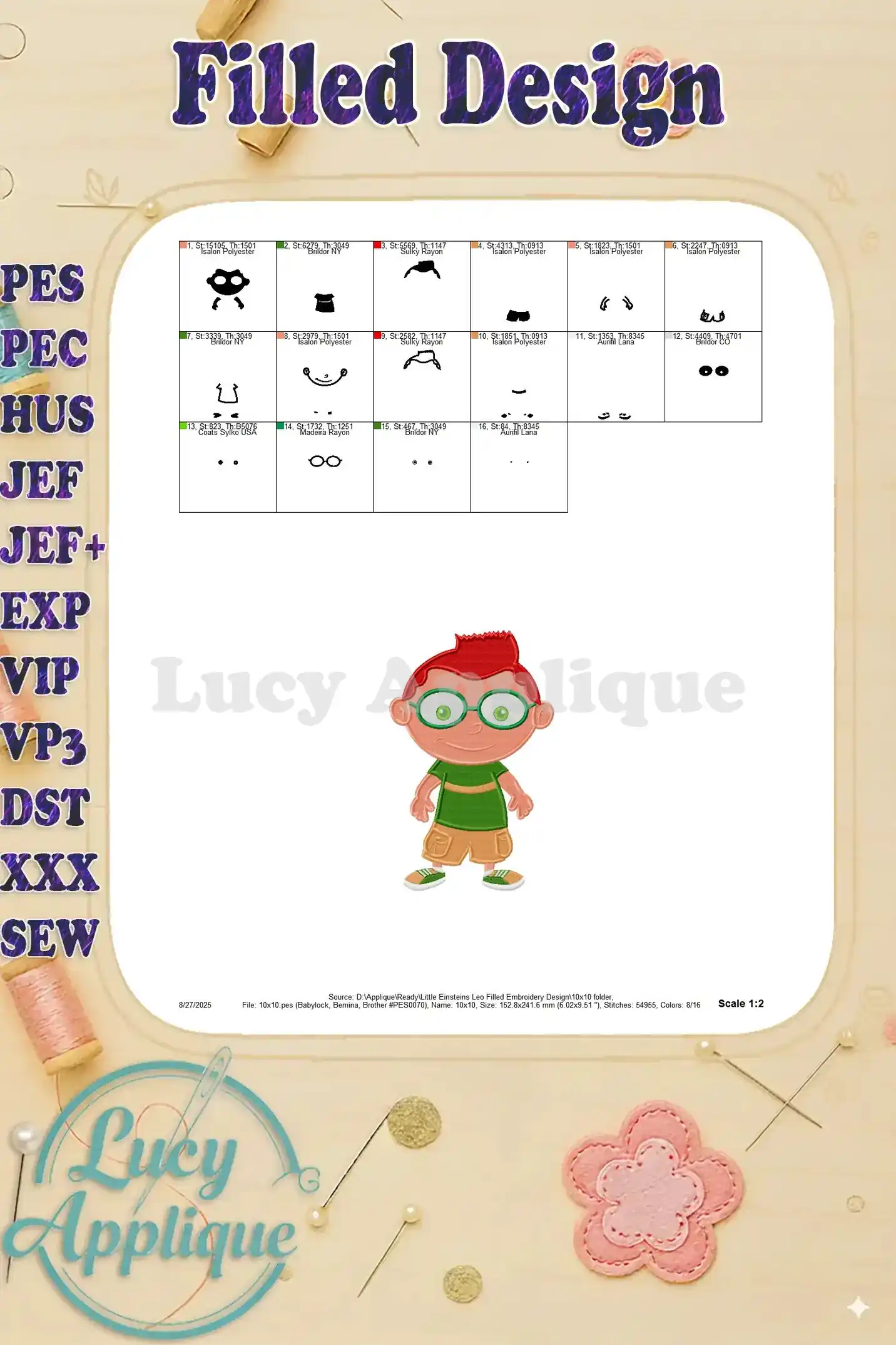 Little Einsteins Leo Filled Embroidery Design – Instant Download
