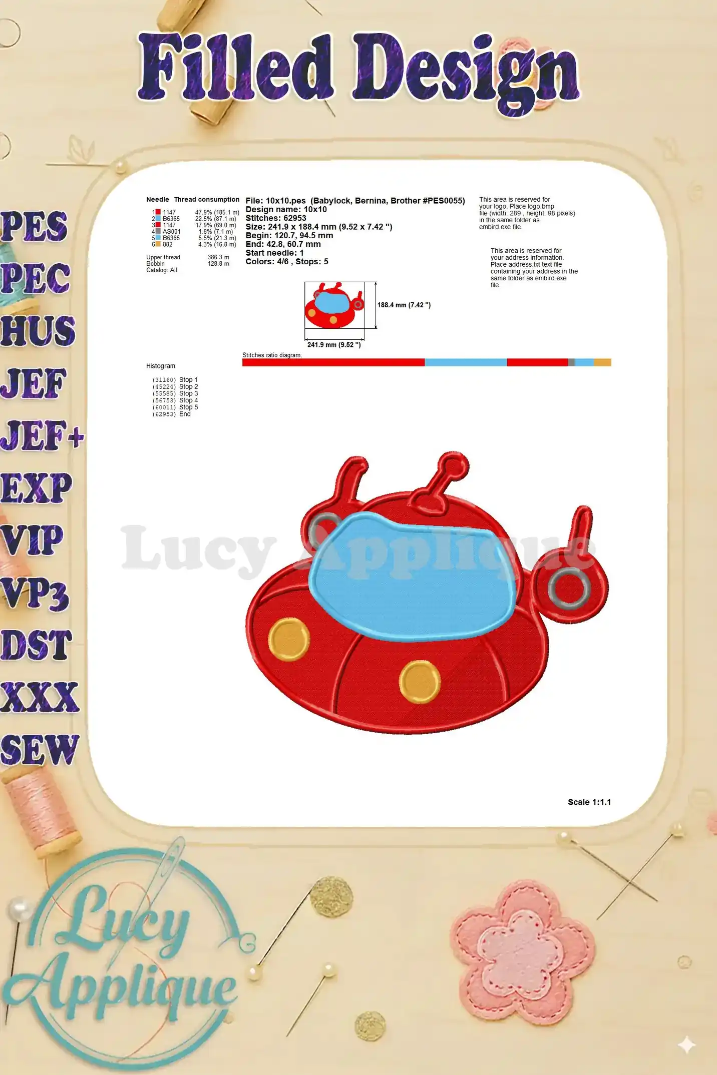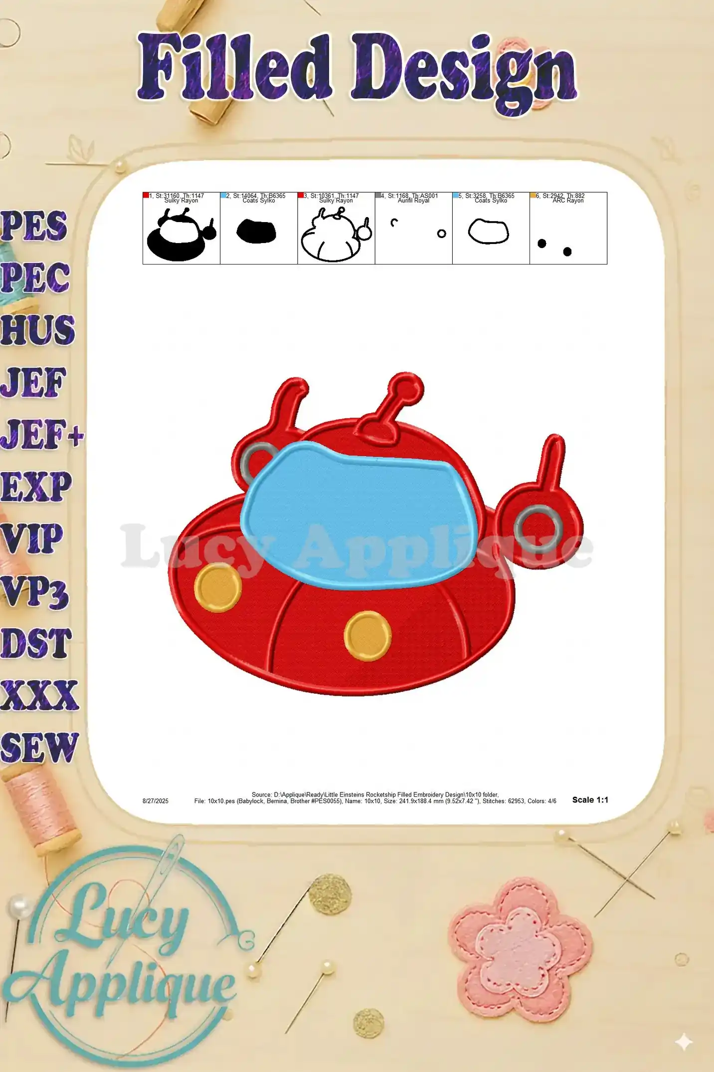 Little Einsteins Rocketship Filled Embroidery Design – Instant Download