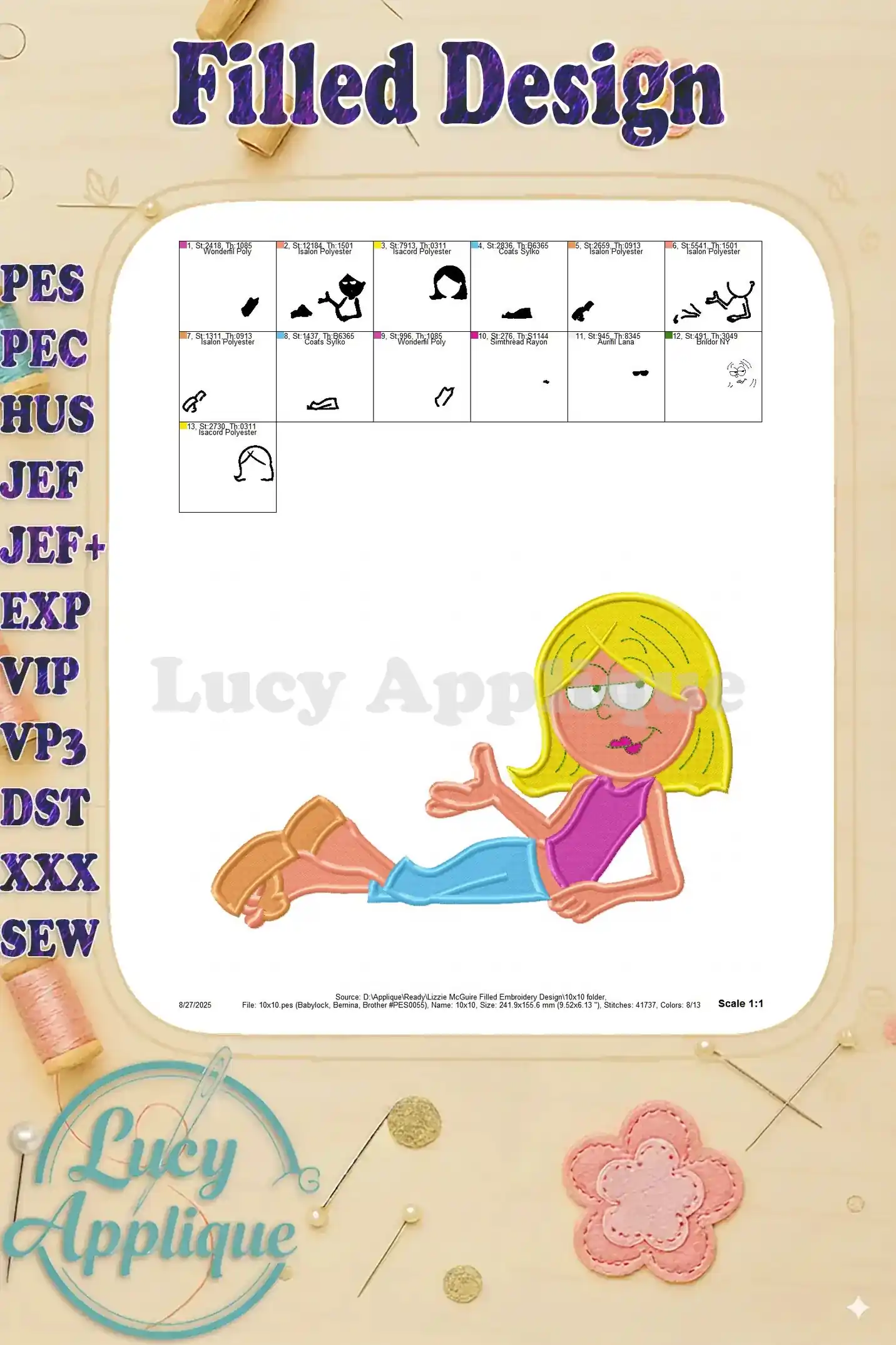 Lizzie McGuire Filled Embroidery Design – Instant Download