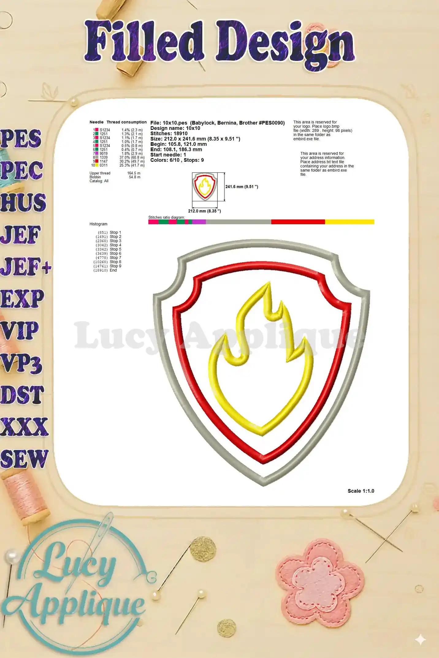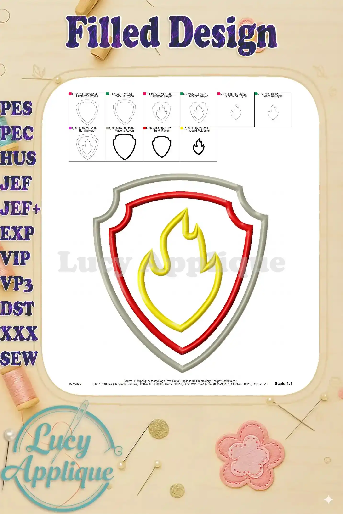 Logo Paw Patrol Applique 01 Embroidery Design – Instant Download