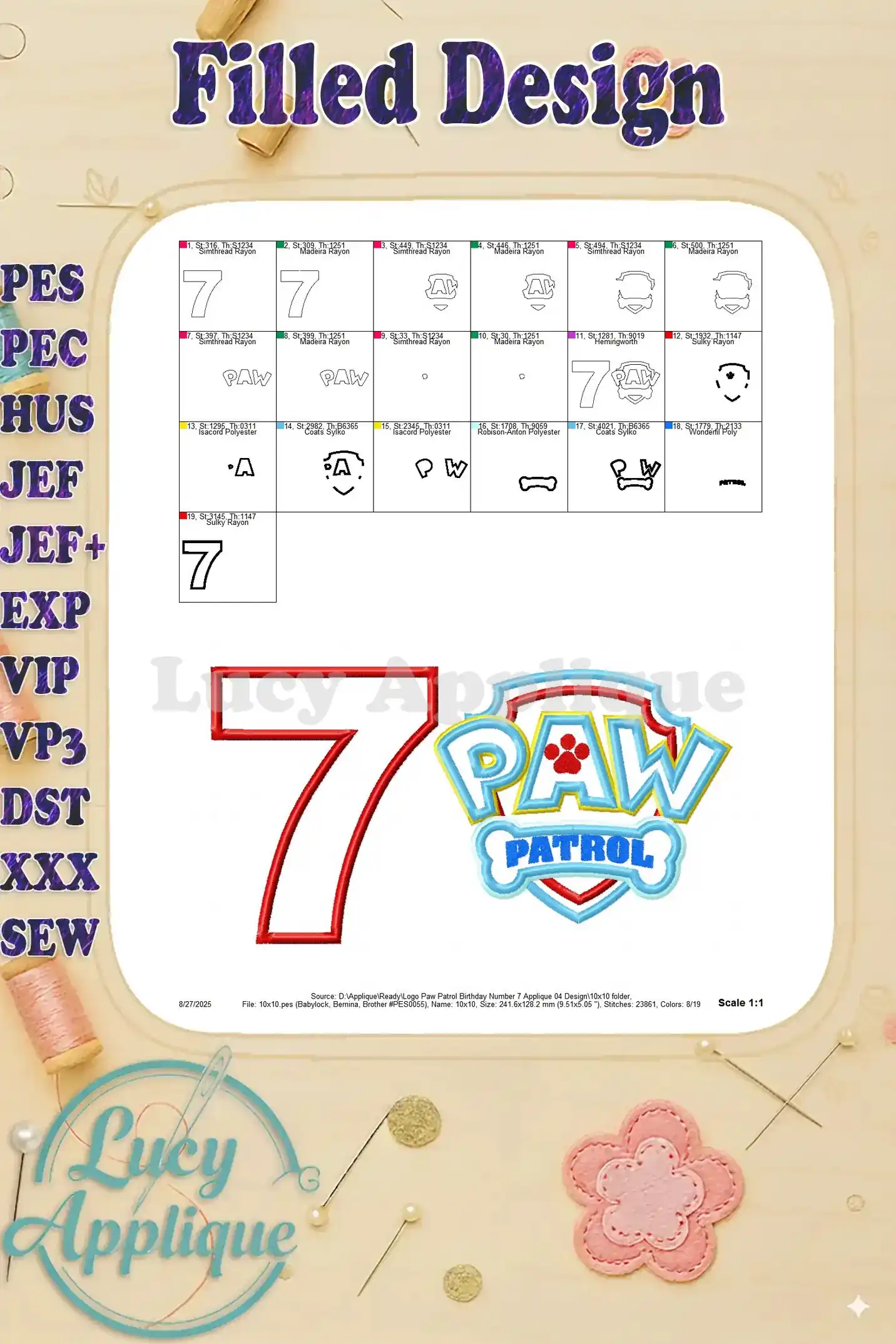 Logo Paw Patrol Birthday Number 7 Applique 04 Design – Instant Download