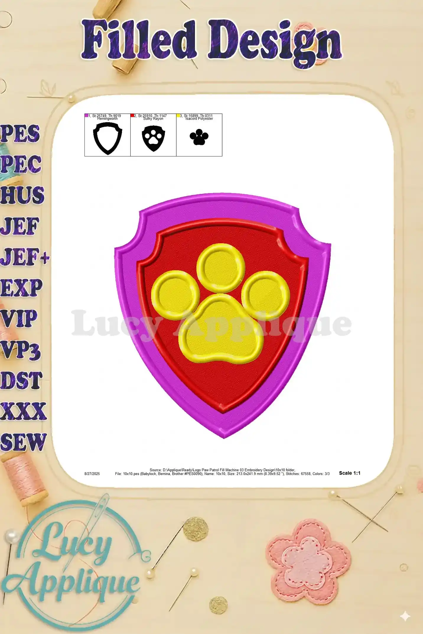 Logo Paw Patrol Fill Machine 03 Embroidery Design – Instant Download