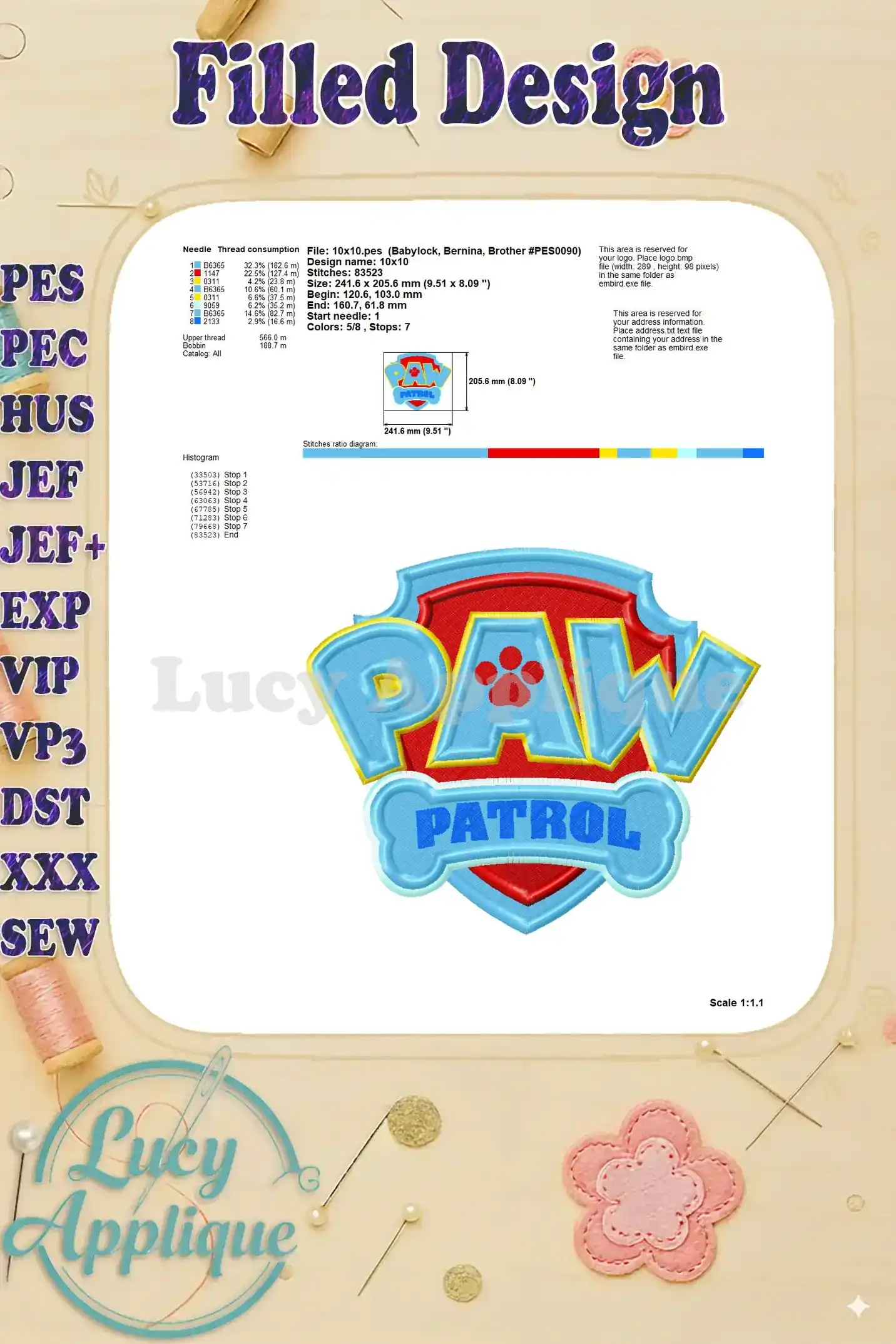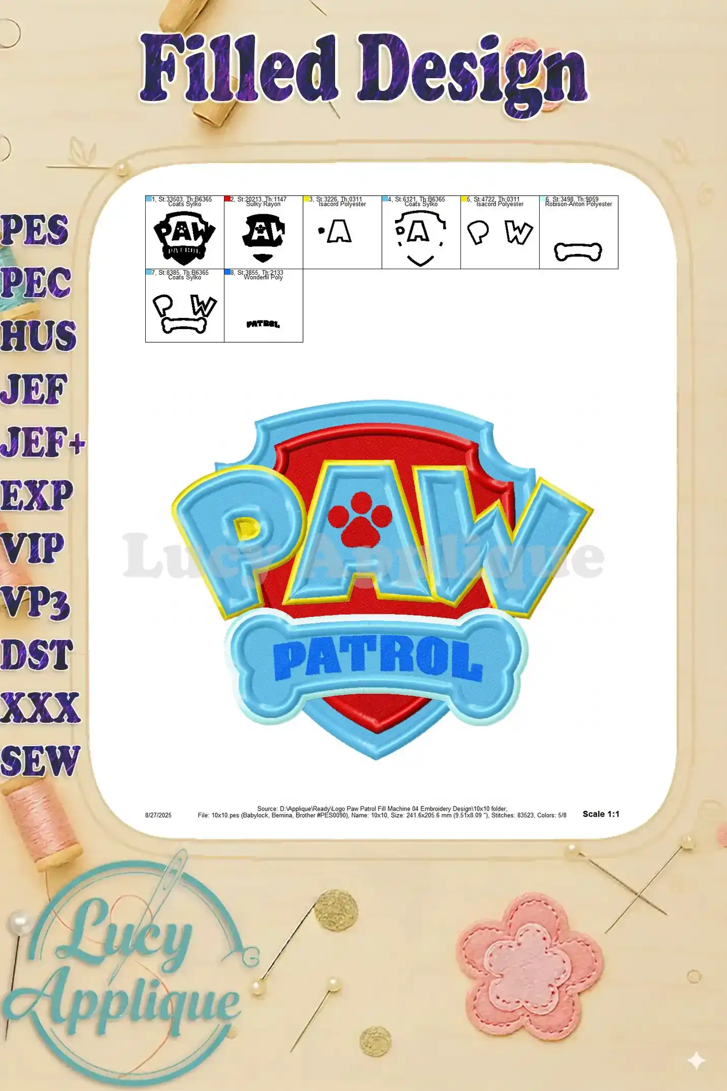 Logo Paw Patrol Fill Machine 04 Embroidery Design – Instant Download