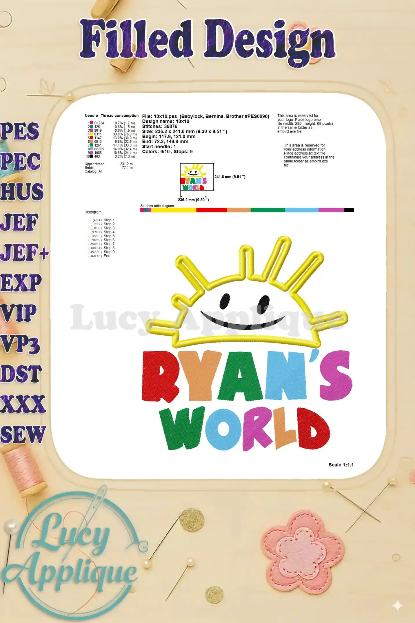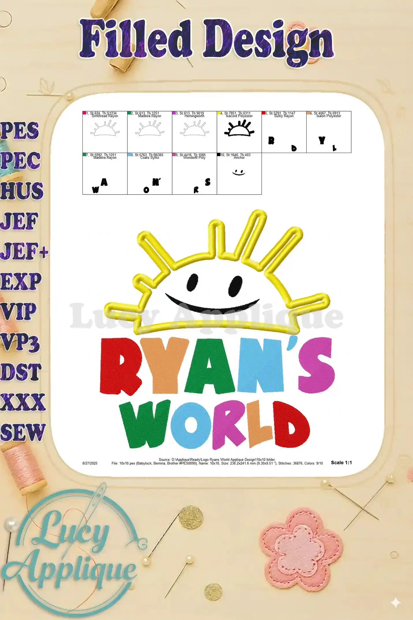 Logo Ryans World Applique Design – Instant Download