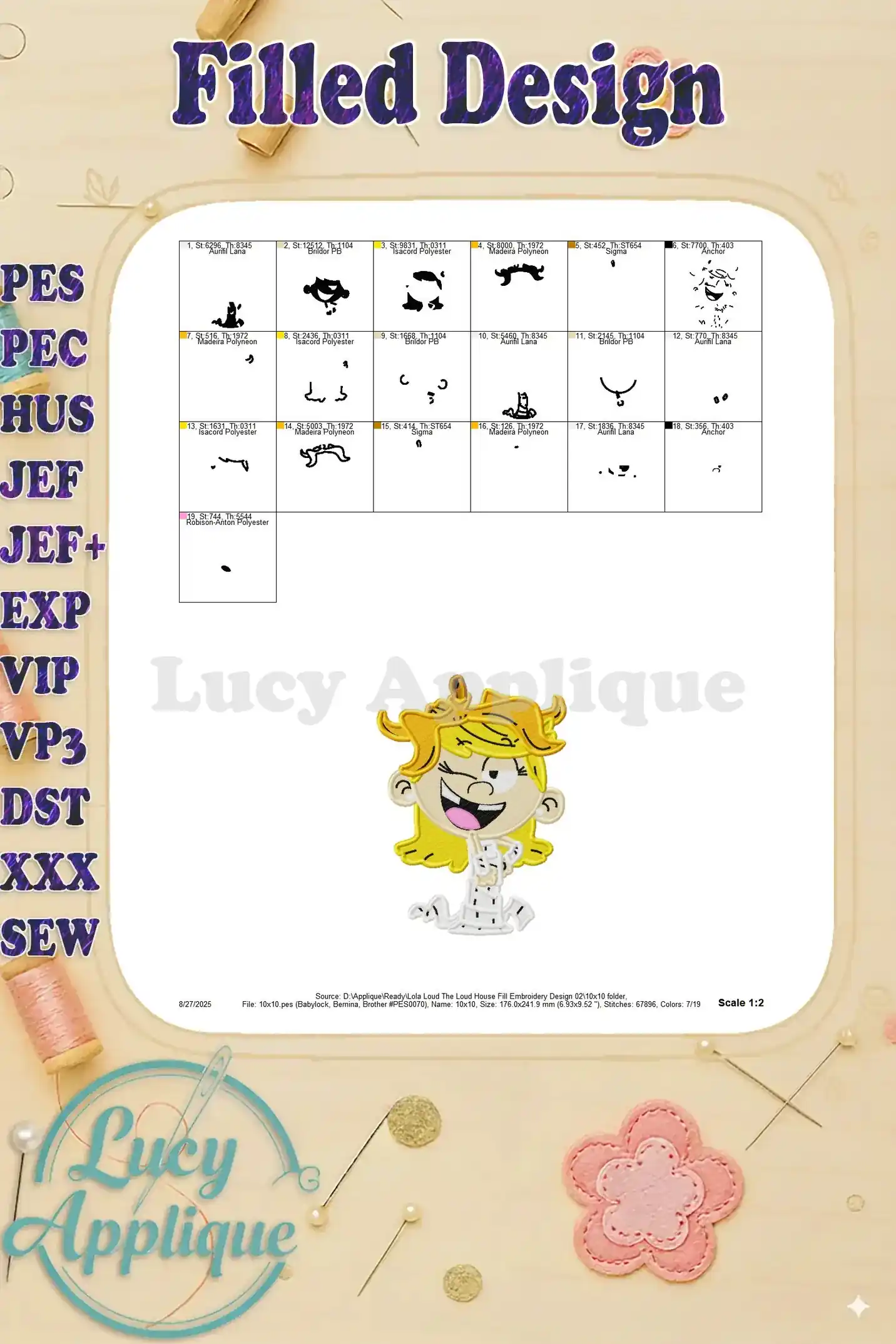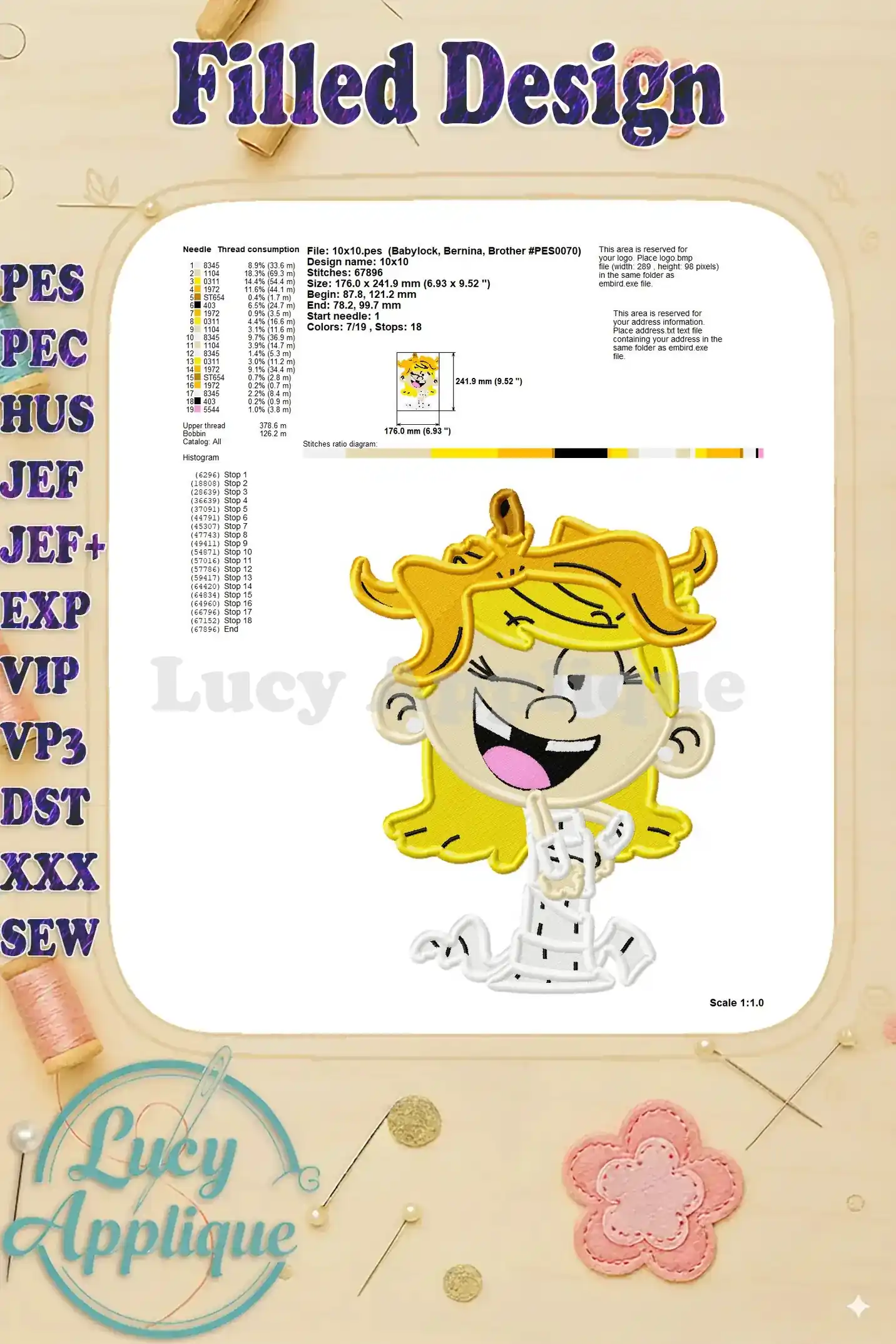 Lola Loud The Loud House Fill Embroidery Design 02 – Instant Download