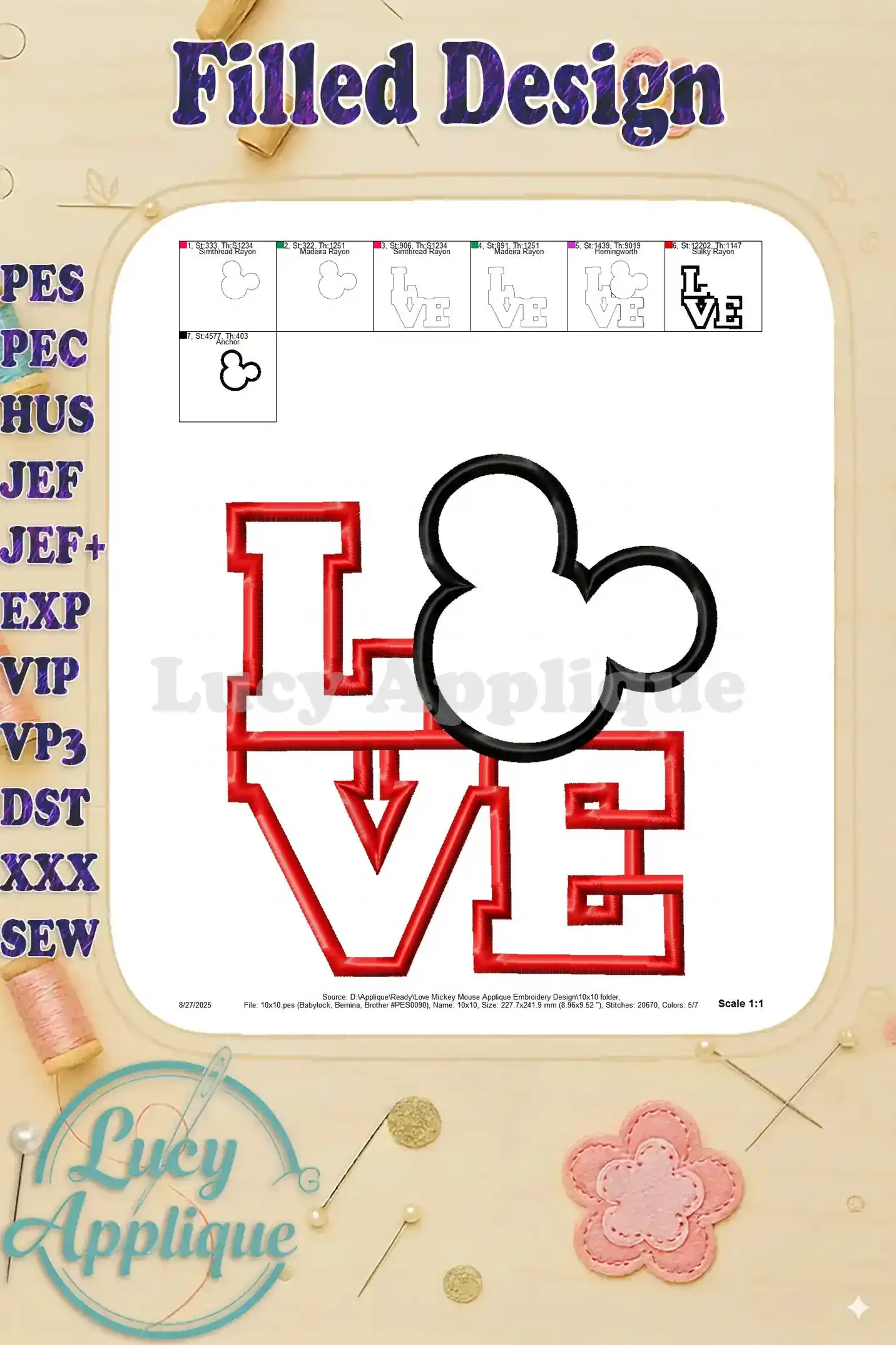 Love Mickey Mouse Applique Embroidery Design – Instant Download