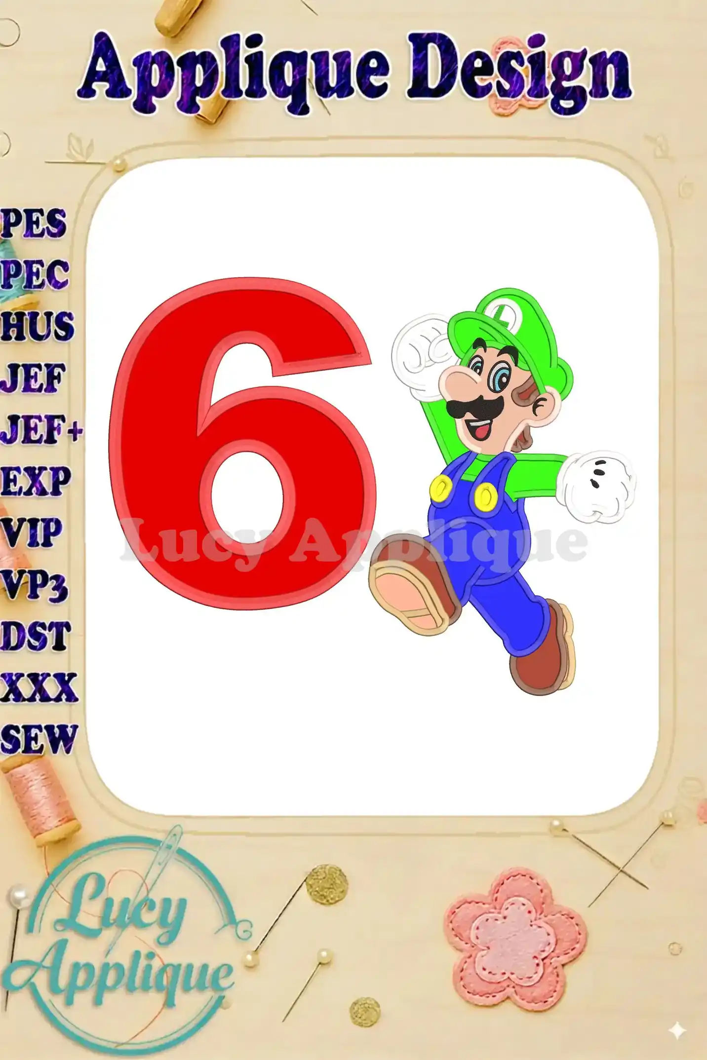 Luigi Super Mario Birthday Number 6 Applique 03 Design – Instant Download