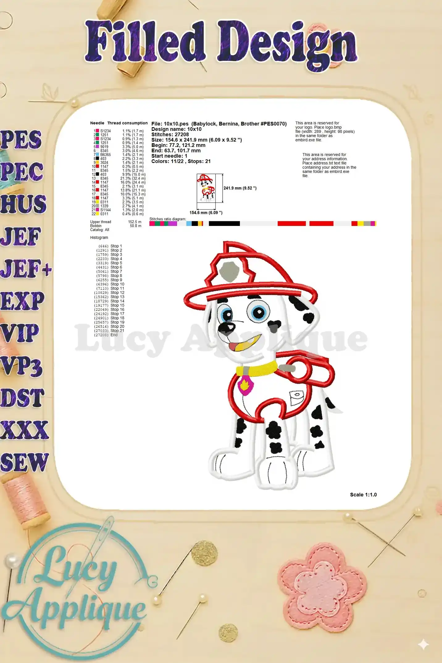Marshall Paw Patrol Applique Embroidery Design – Instant Download