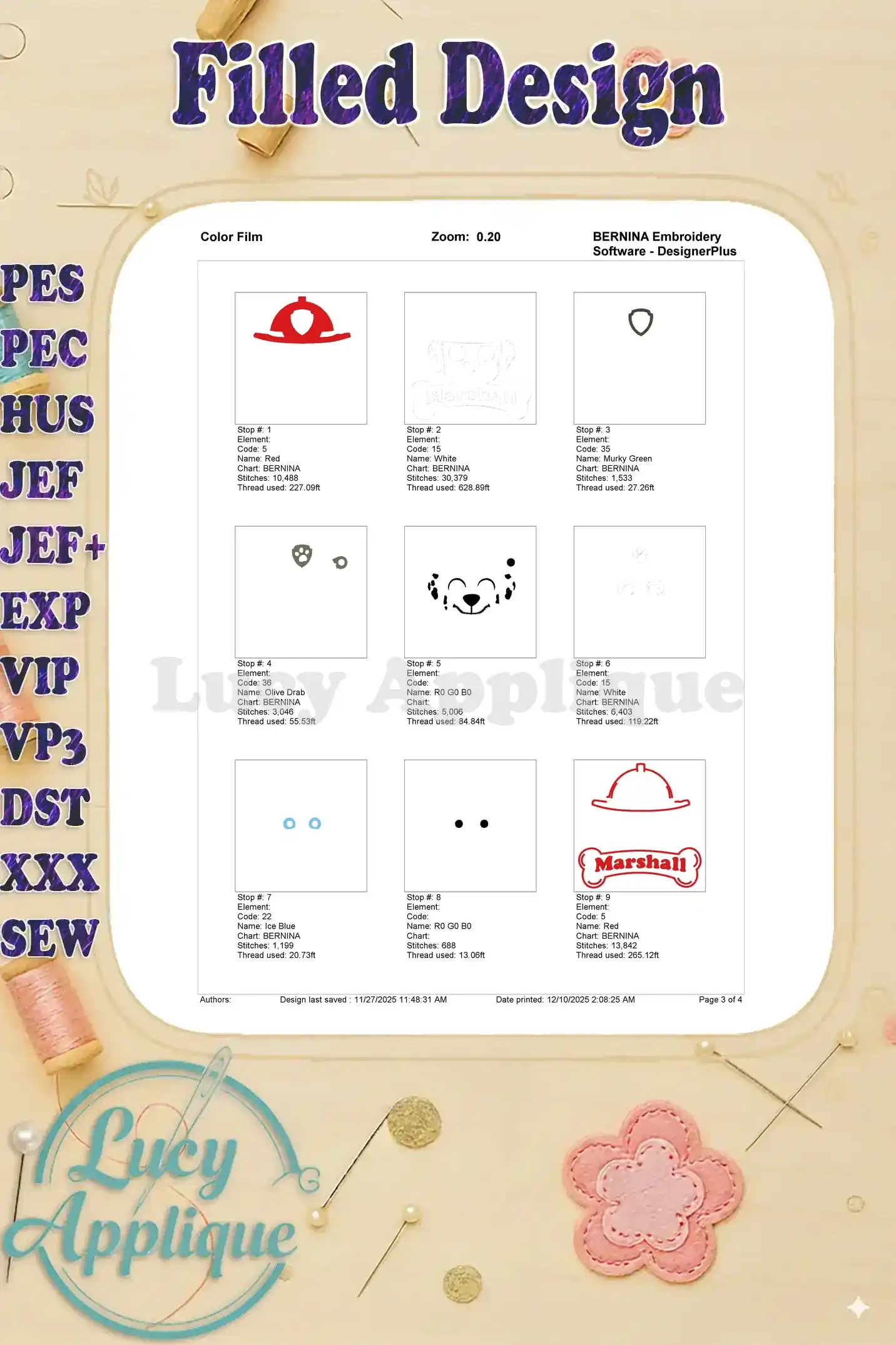 Marshall Paw Patrol The Dino Movie Fill Embroidery Designs