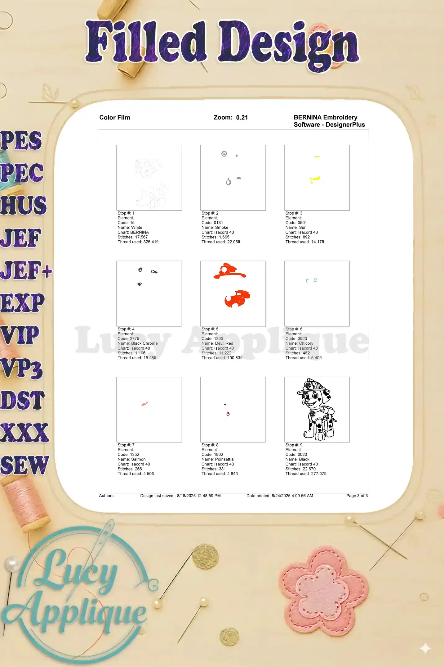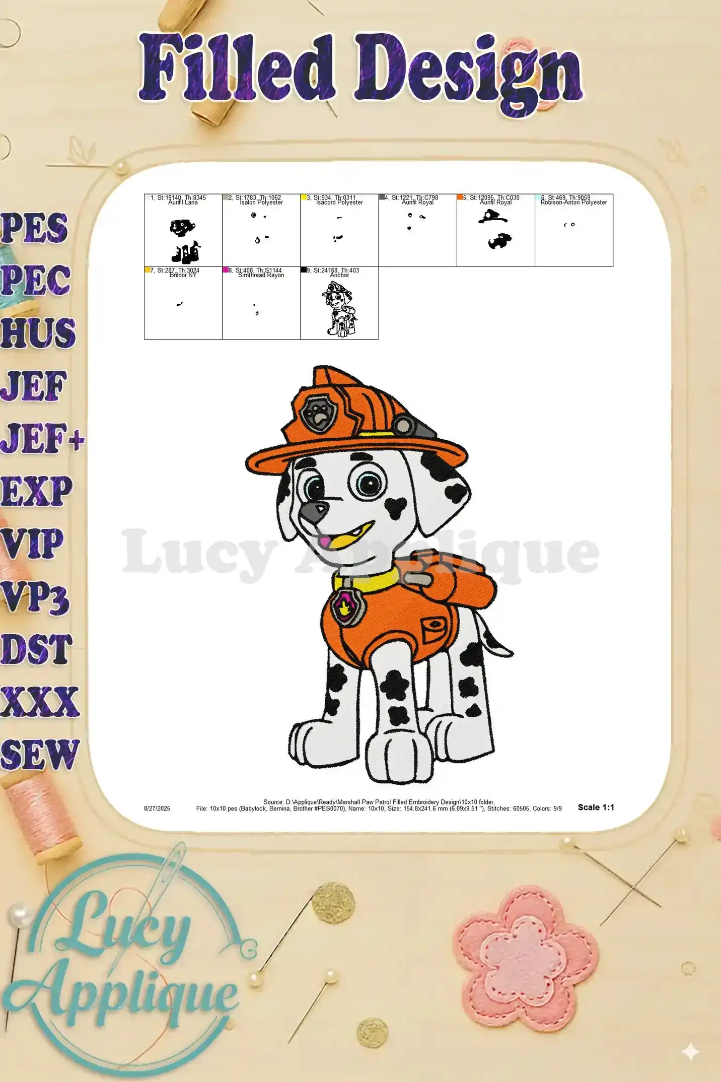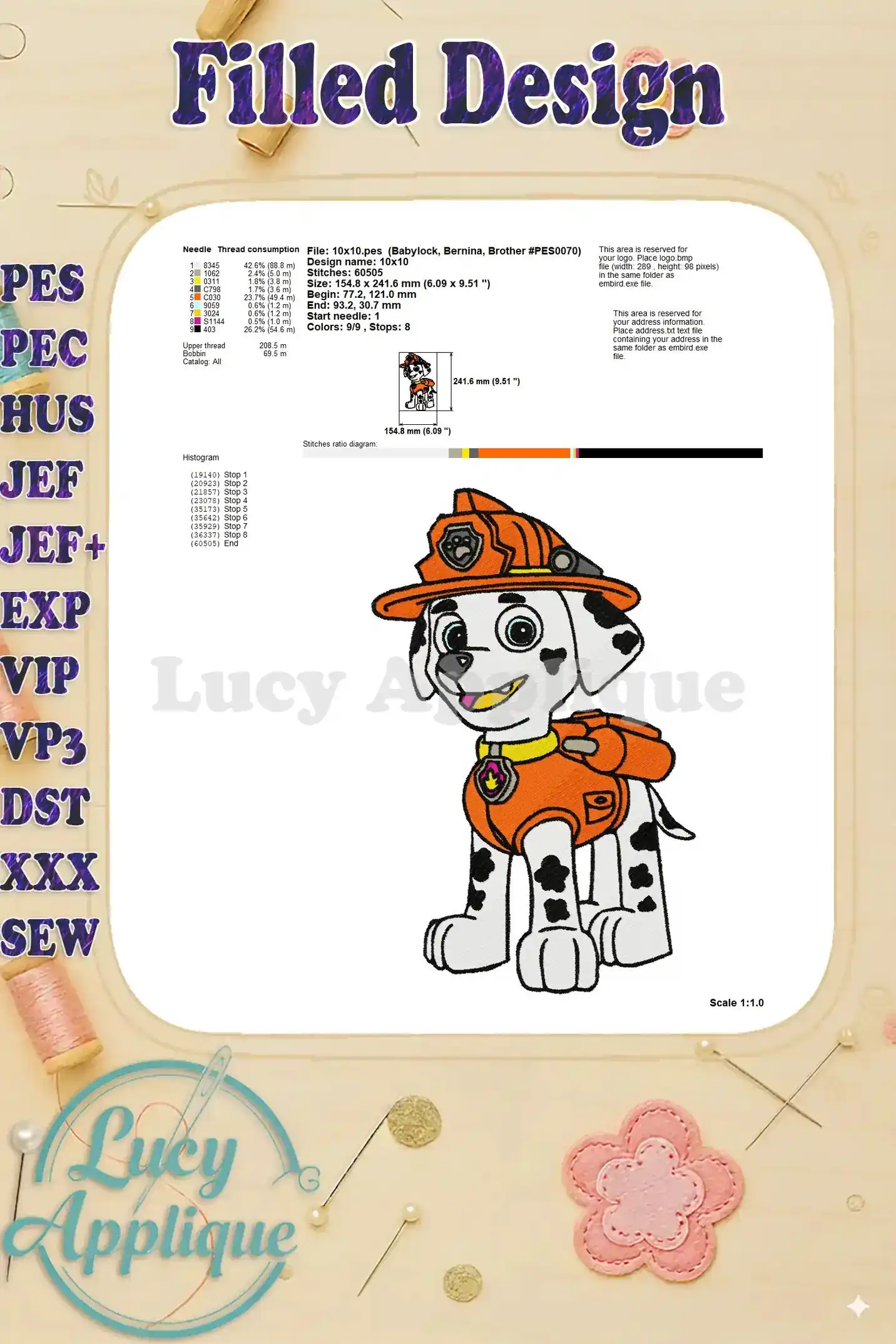 Marshall Paw Patrol Filled Embroidery Design – Instant Download