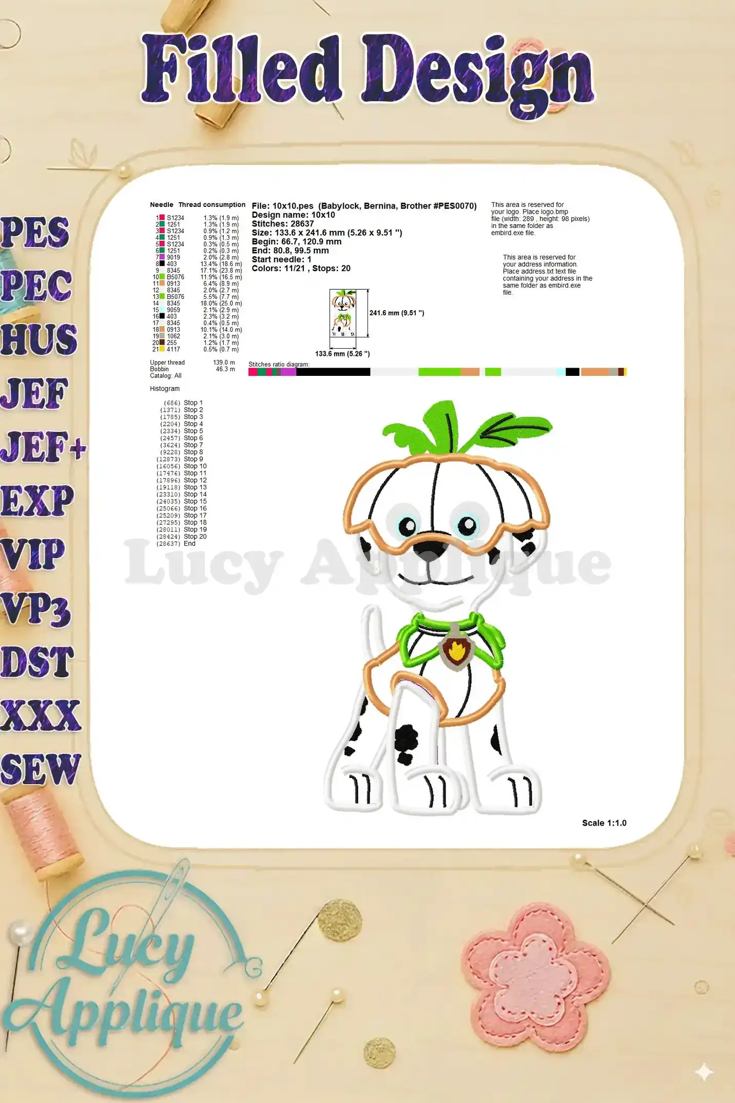 Marshall Paw Patrol Halloween Applique Design 01 – Instant Download