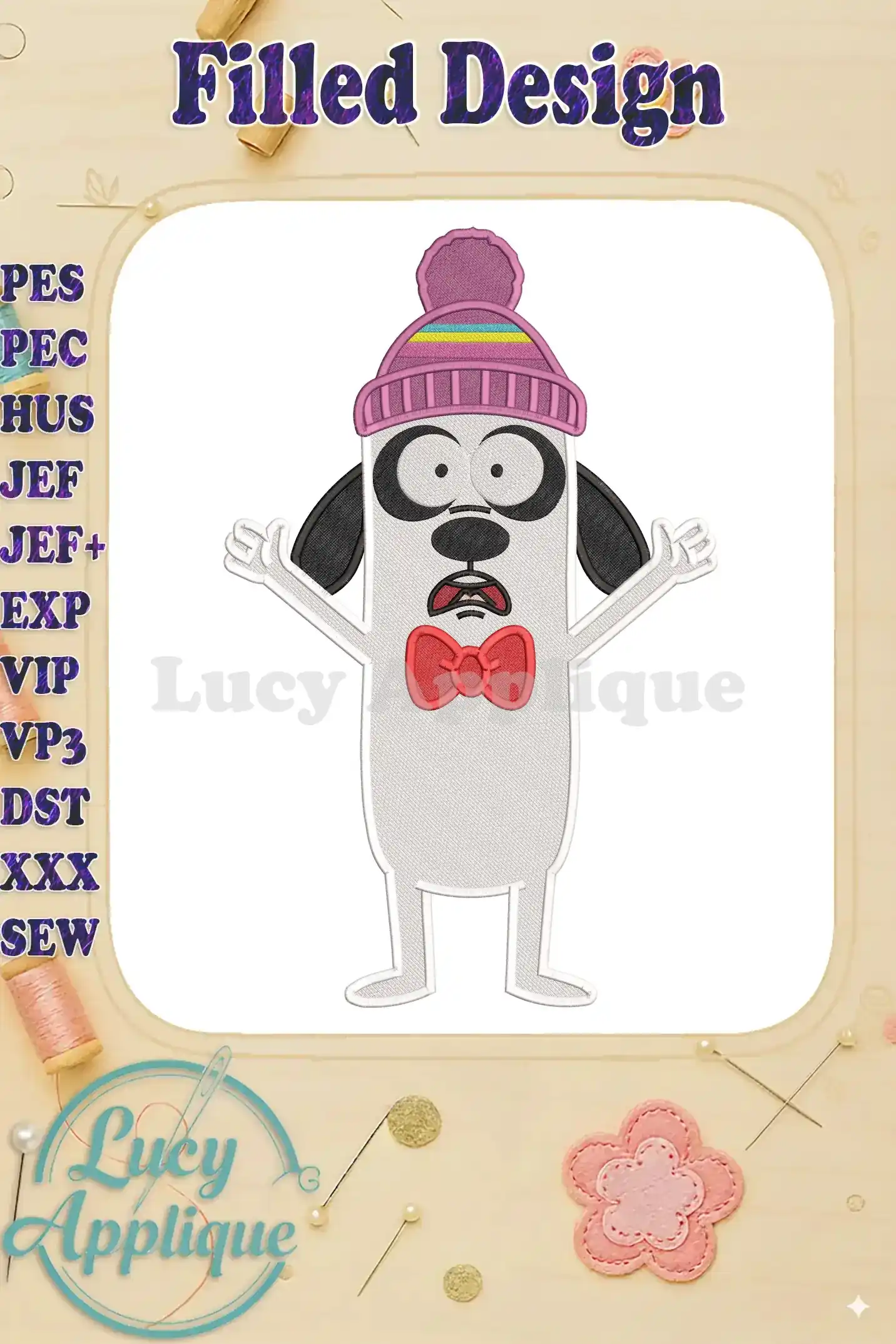 Masameer Junior Shokran shocked dog with pink beanie fill embroidery designs