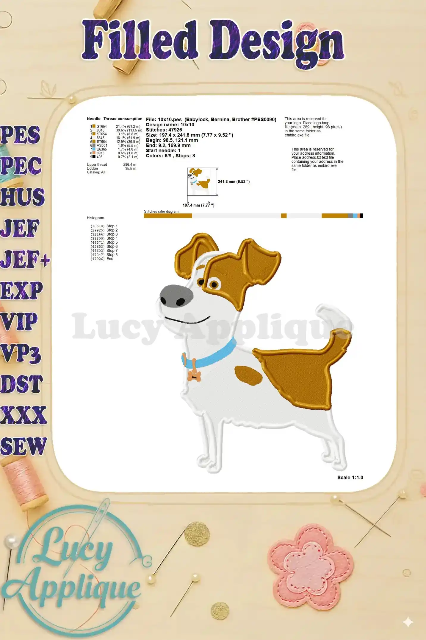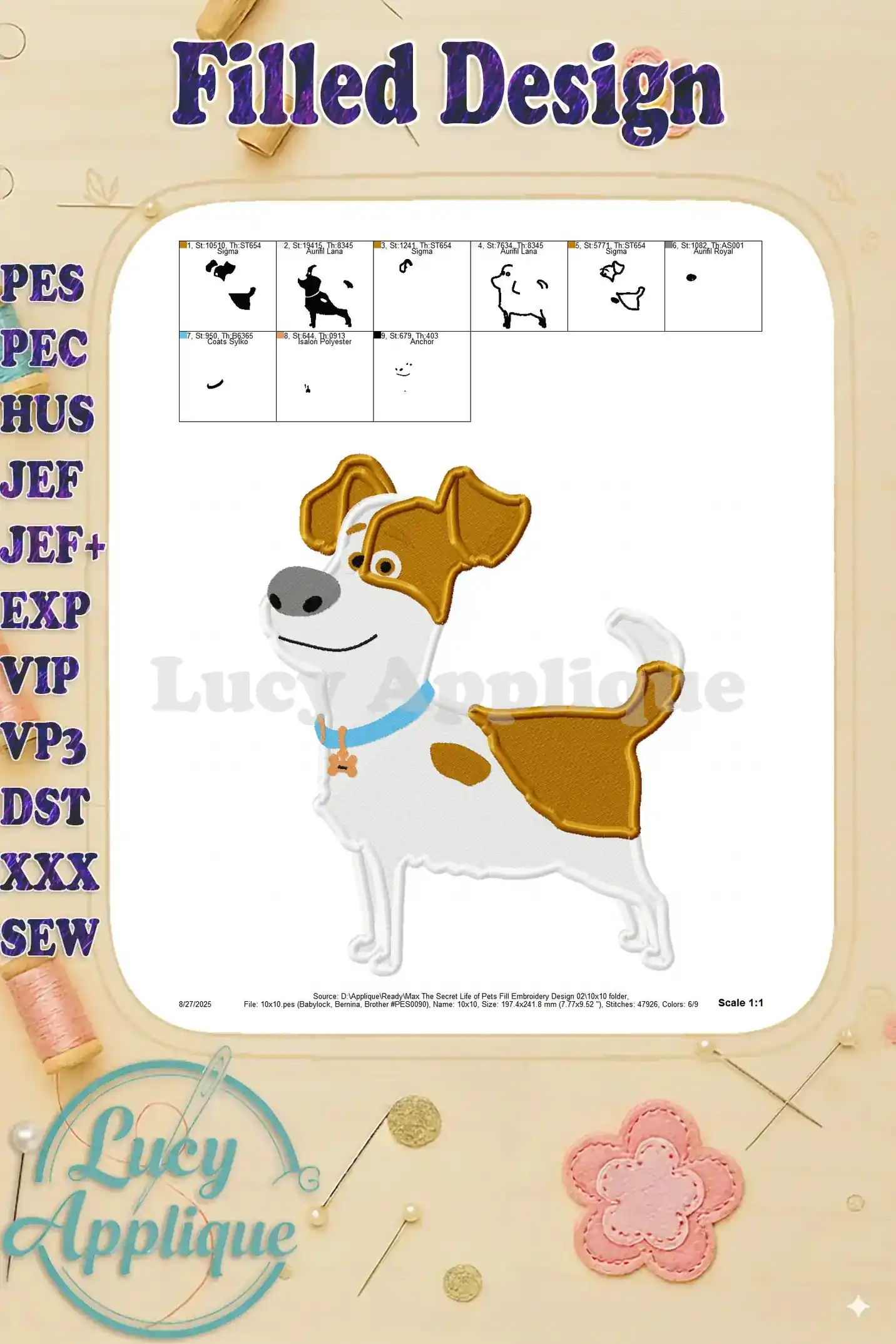 Max The Secret Life of Pets Fill Embroidery Design 02 – Instant Download