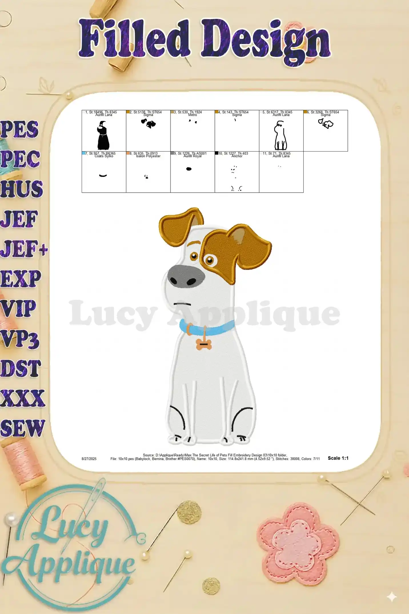 Max The Secret Life of Pets Fill Embroidery Design 03 – Instant Download