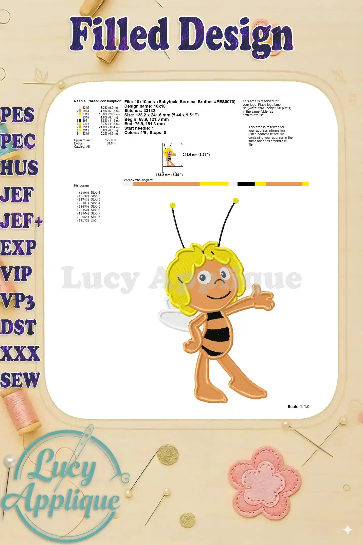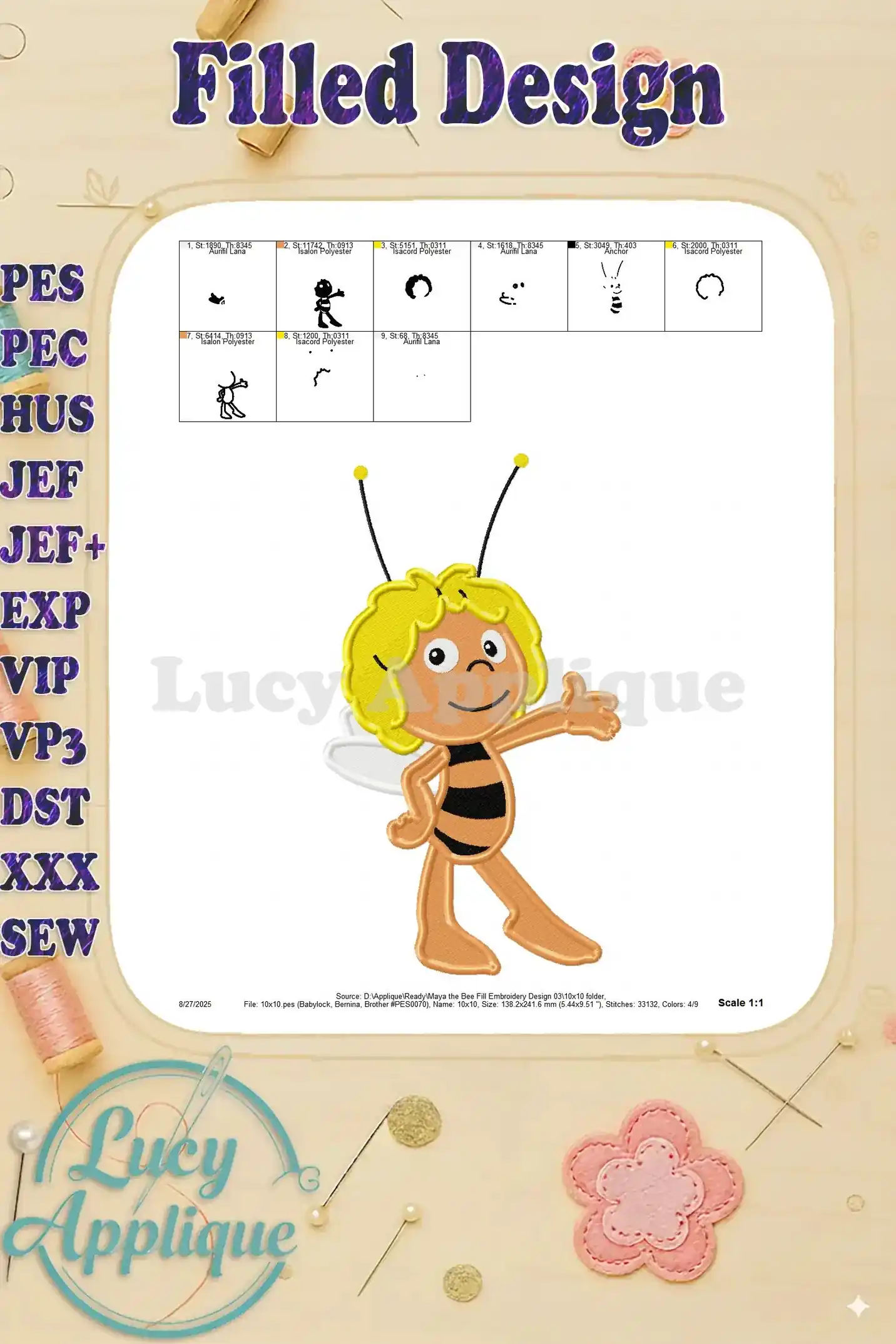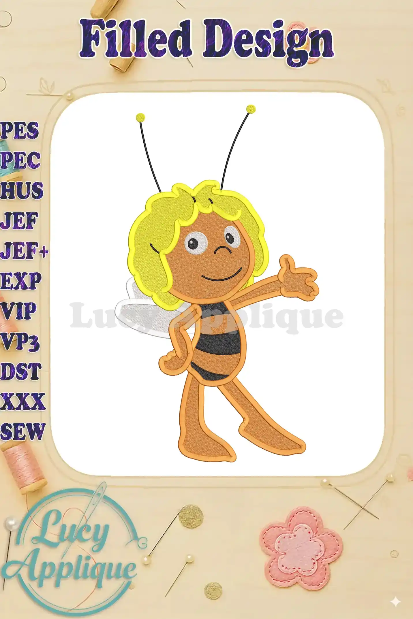 Maya the Bee Fill Embroidery Design 03 – Instant Download