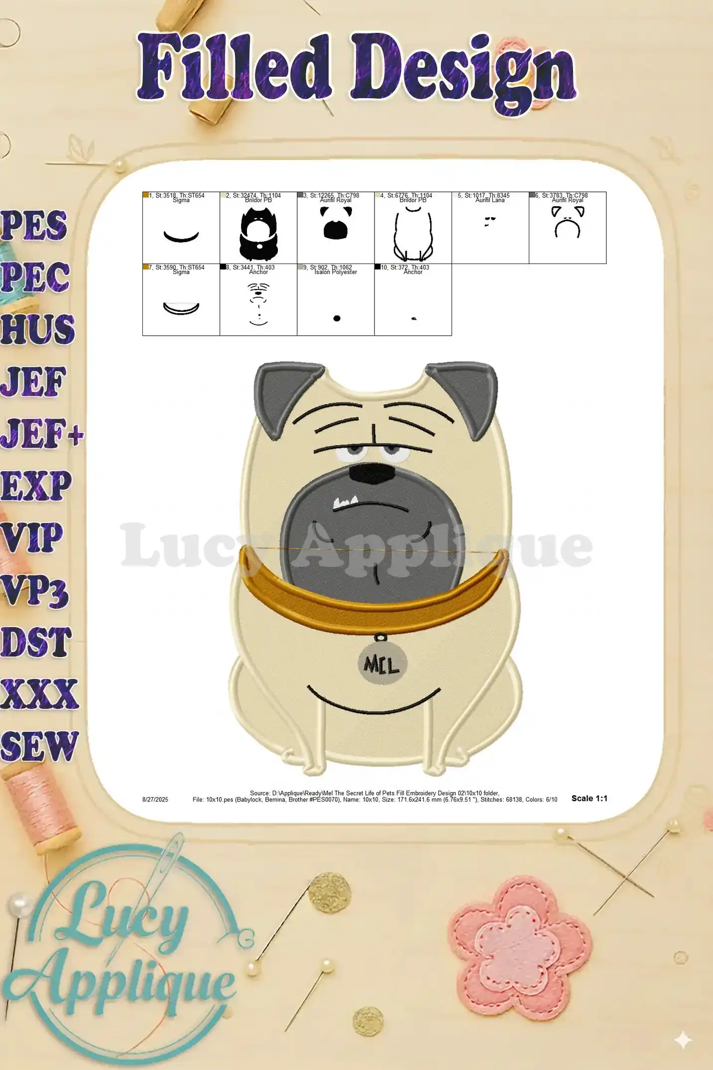 Mel The Secret Life of Pets Fill Embroidery Design 02 – Instant Download
