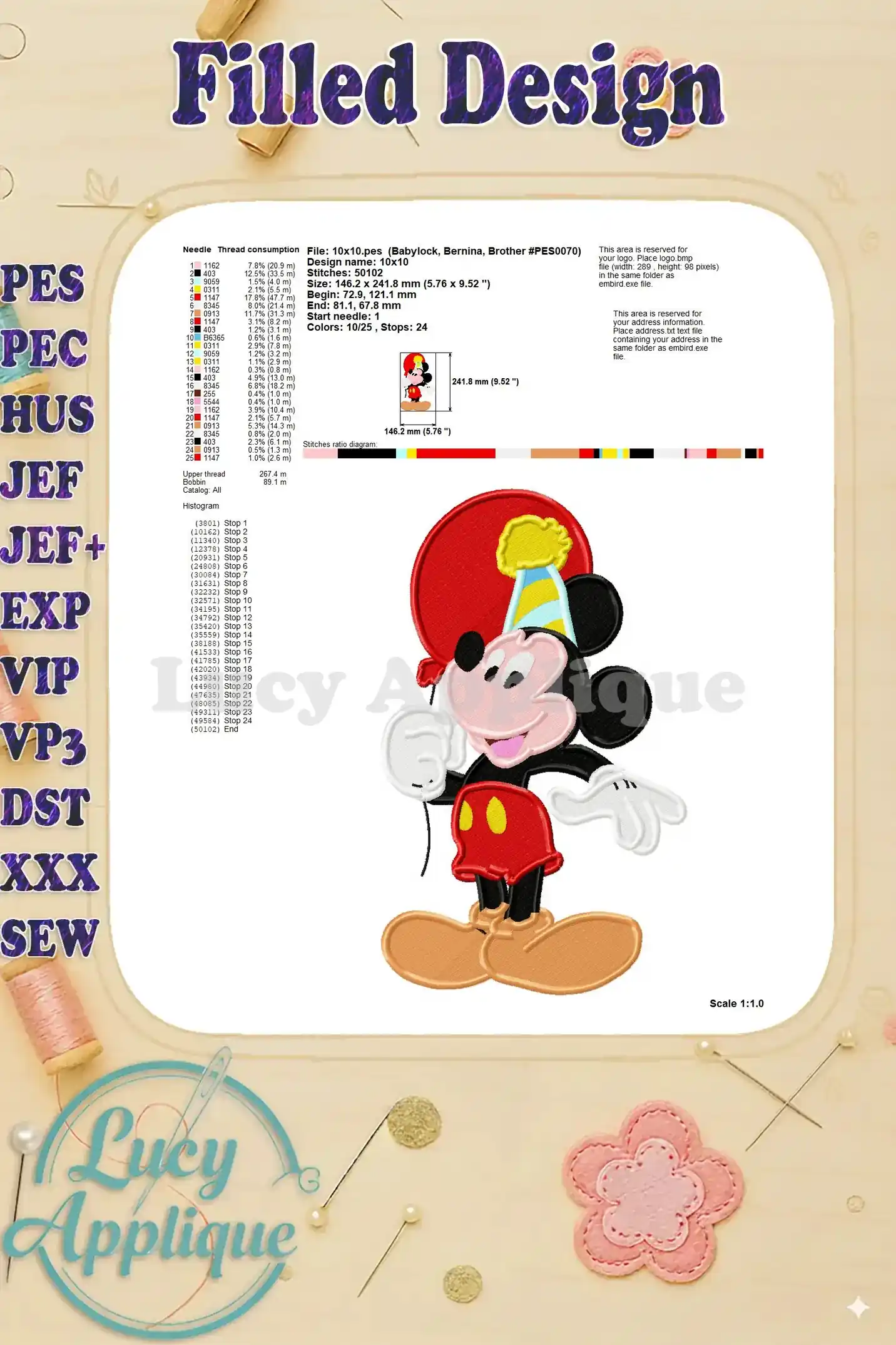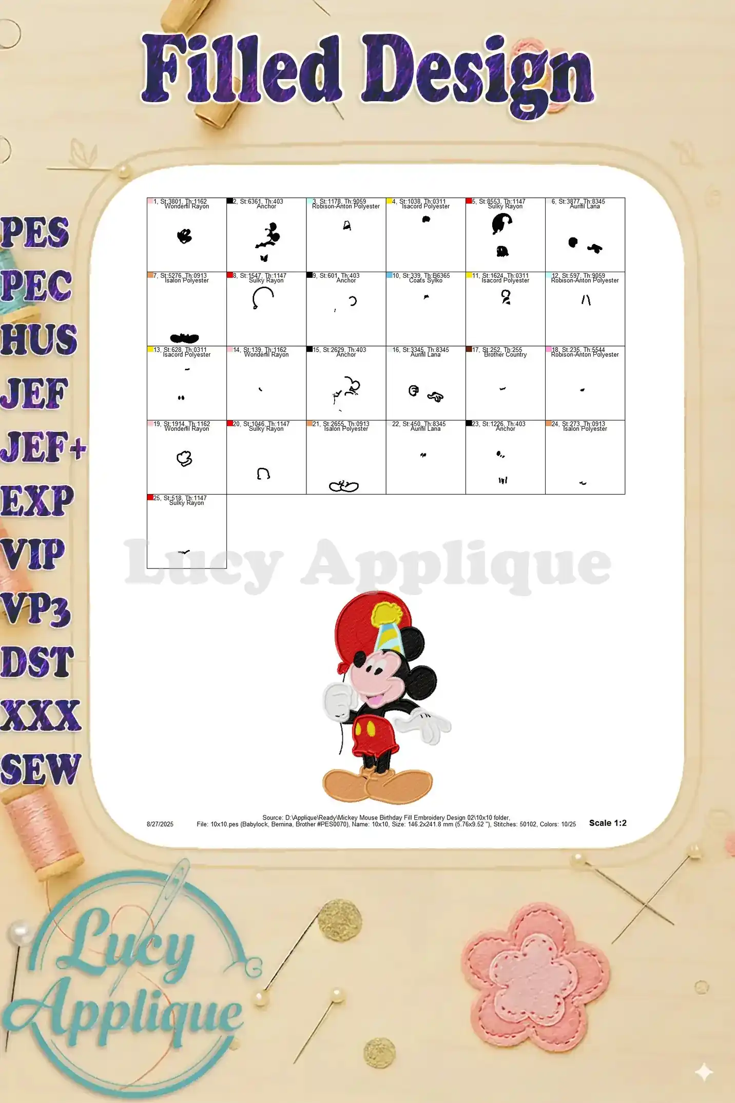 Mickey Mouse Birthday Fill Embroidery Design 02 – Instant Download