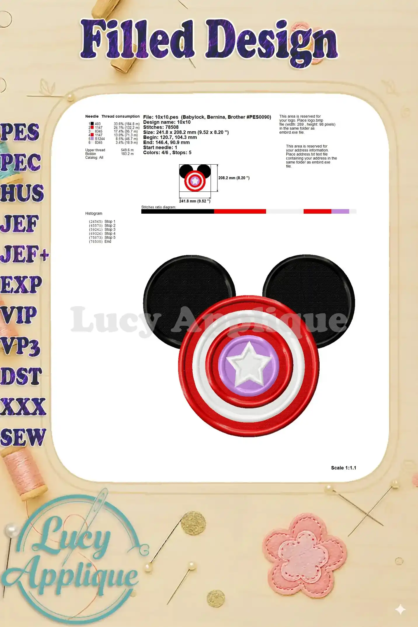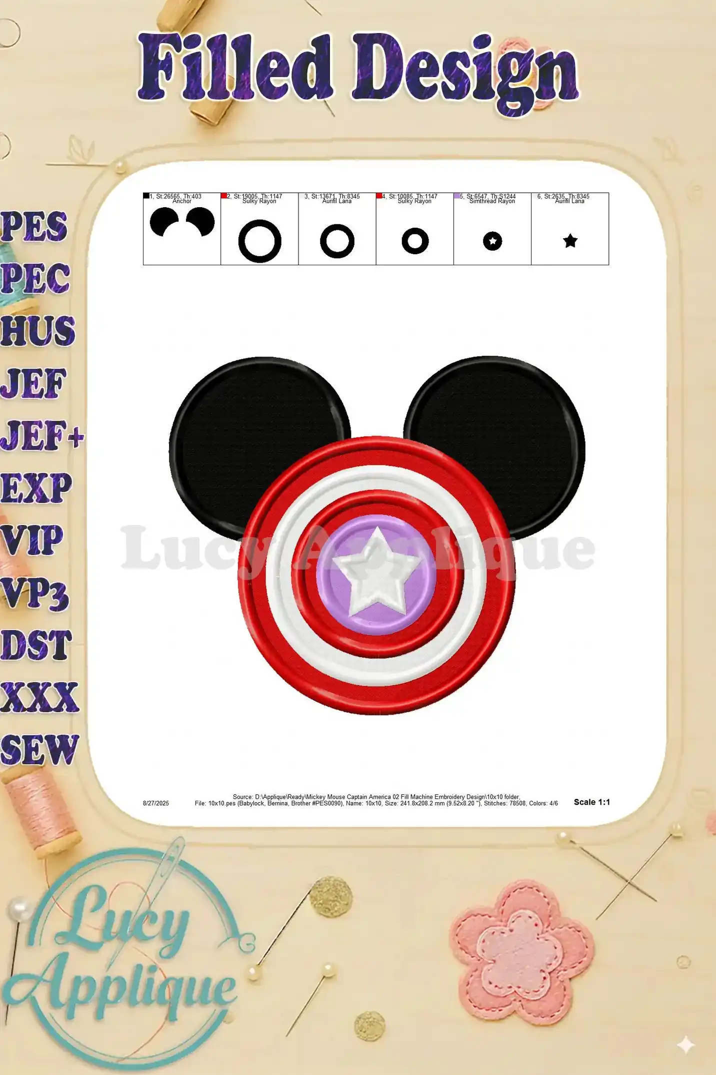 Mickey Mouse Captain America 02 Fill Machine Embroidery Design – Instant Download