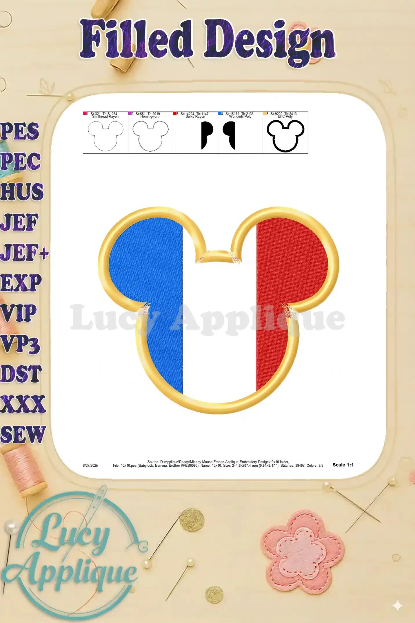 Mickey Mouse France Applique Embroidery Design – Instant Download