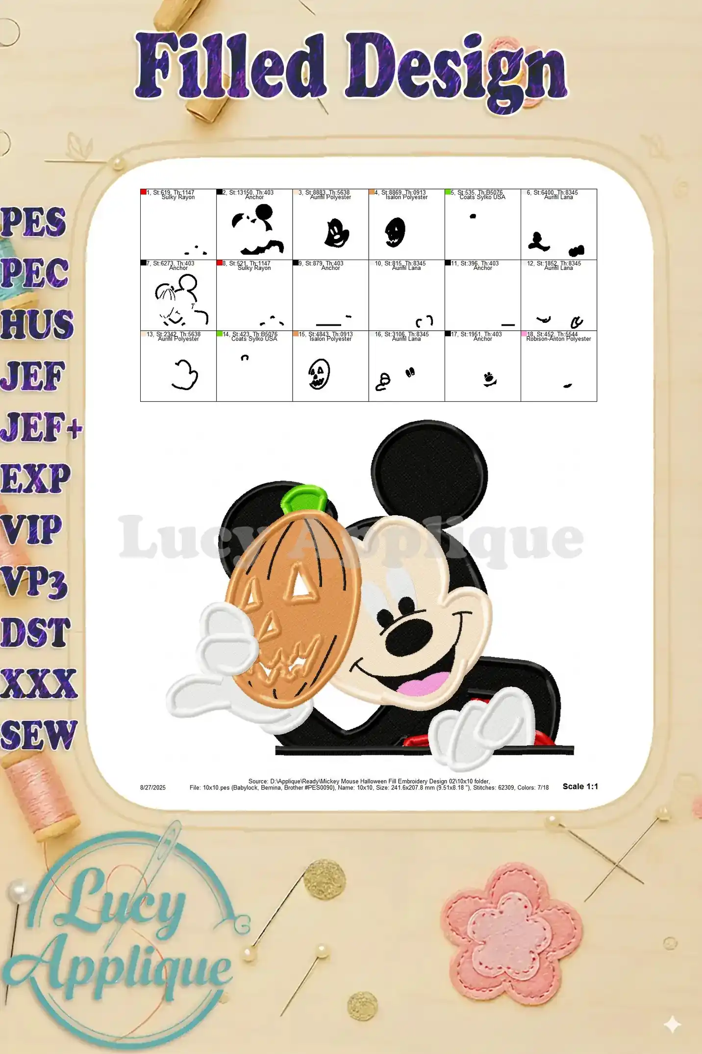 Mickey Mouse Halloween Fill Embroidery Design 02 – Instant Download