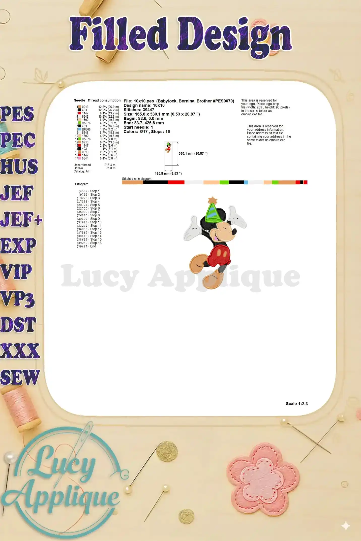 Mickey Mouse Party Fill Embroidery Design 01 – Instant Download