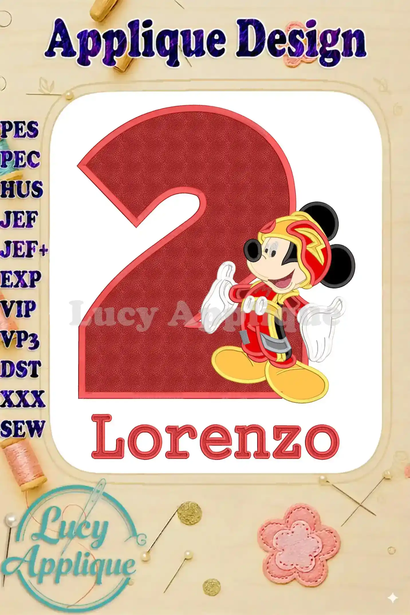 Mickey Mouse Roadster Birthday Number 2 Applique Embroidery Design – Instant Download