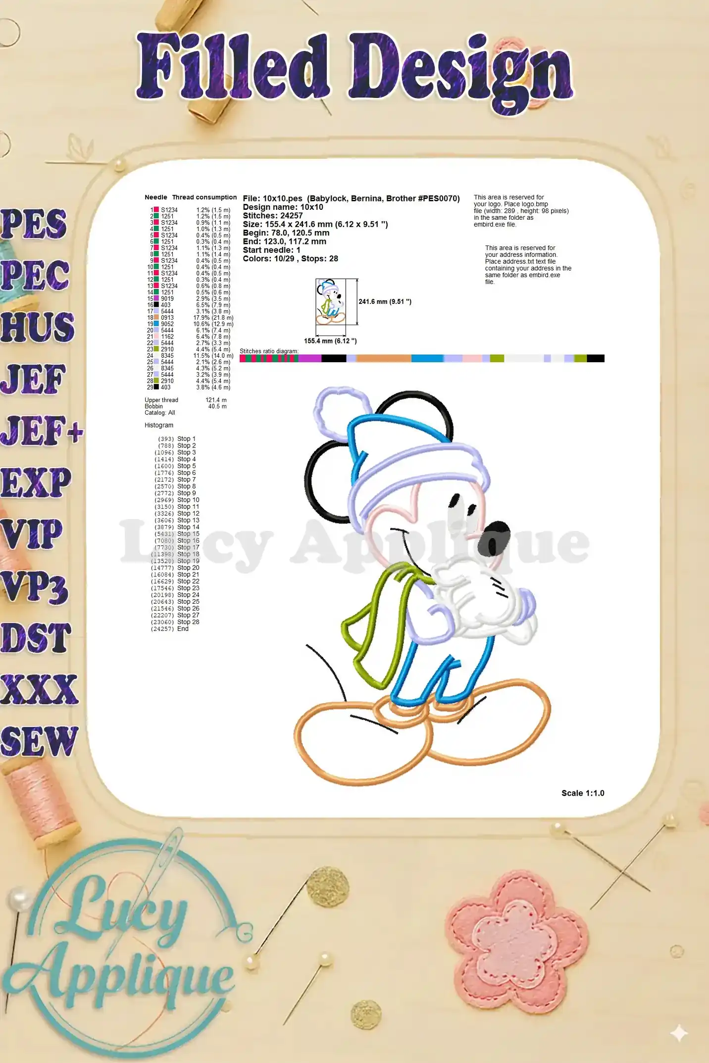 Mickey Mouse Winter Applique Design 03 – Instant Download