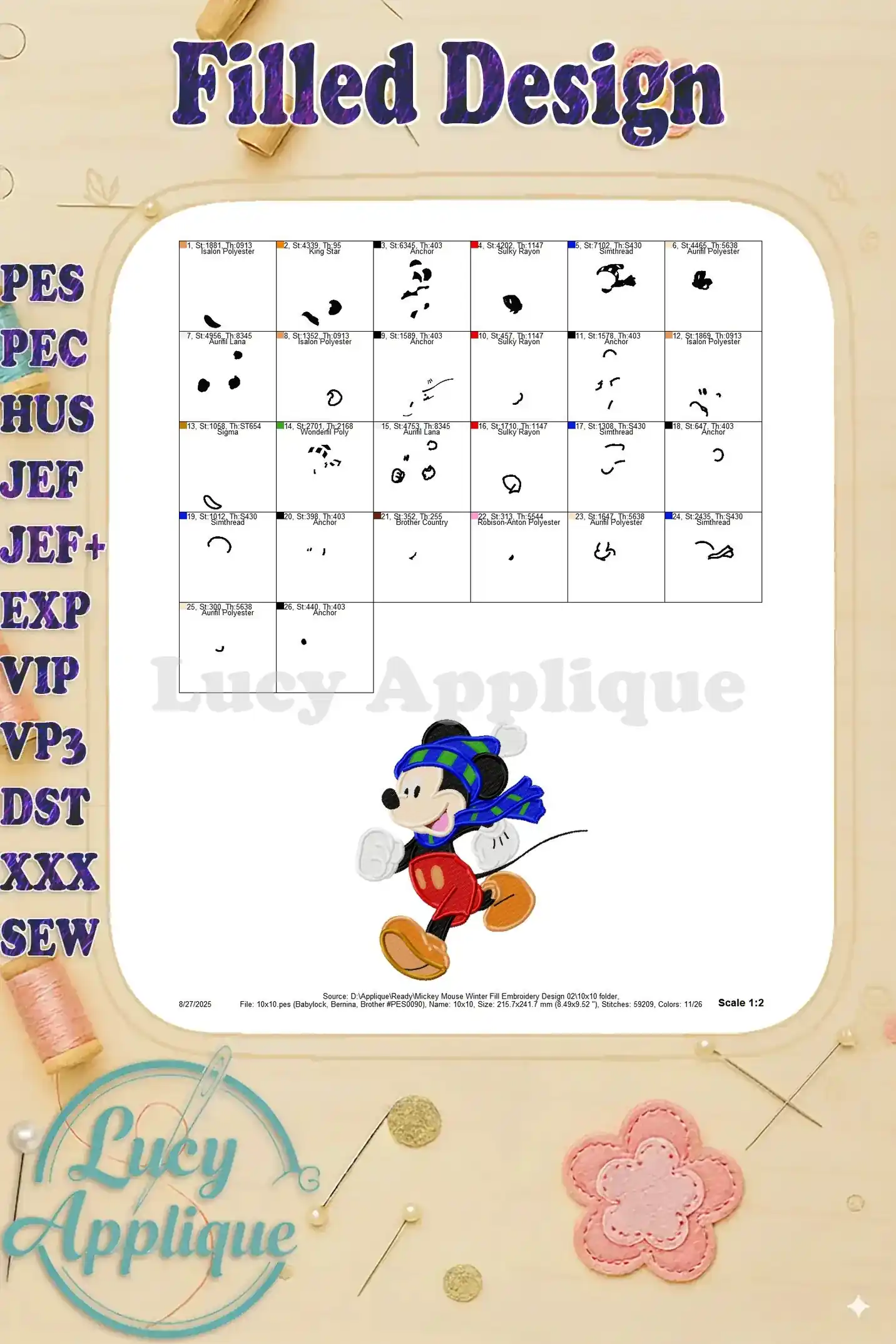 Mickey Mouse Winter Fill Embroidery Design 02 – Instant Download