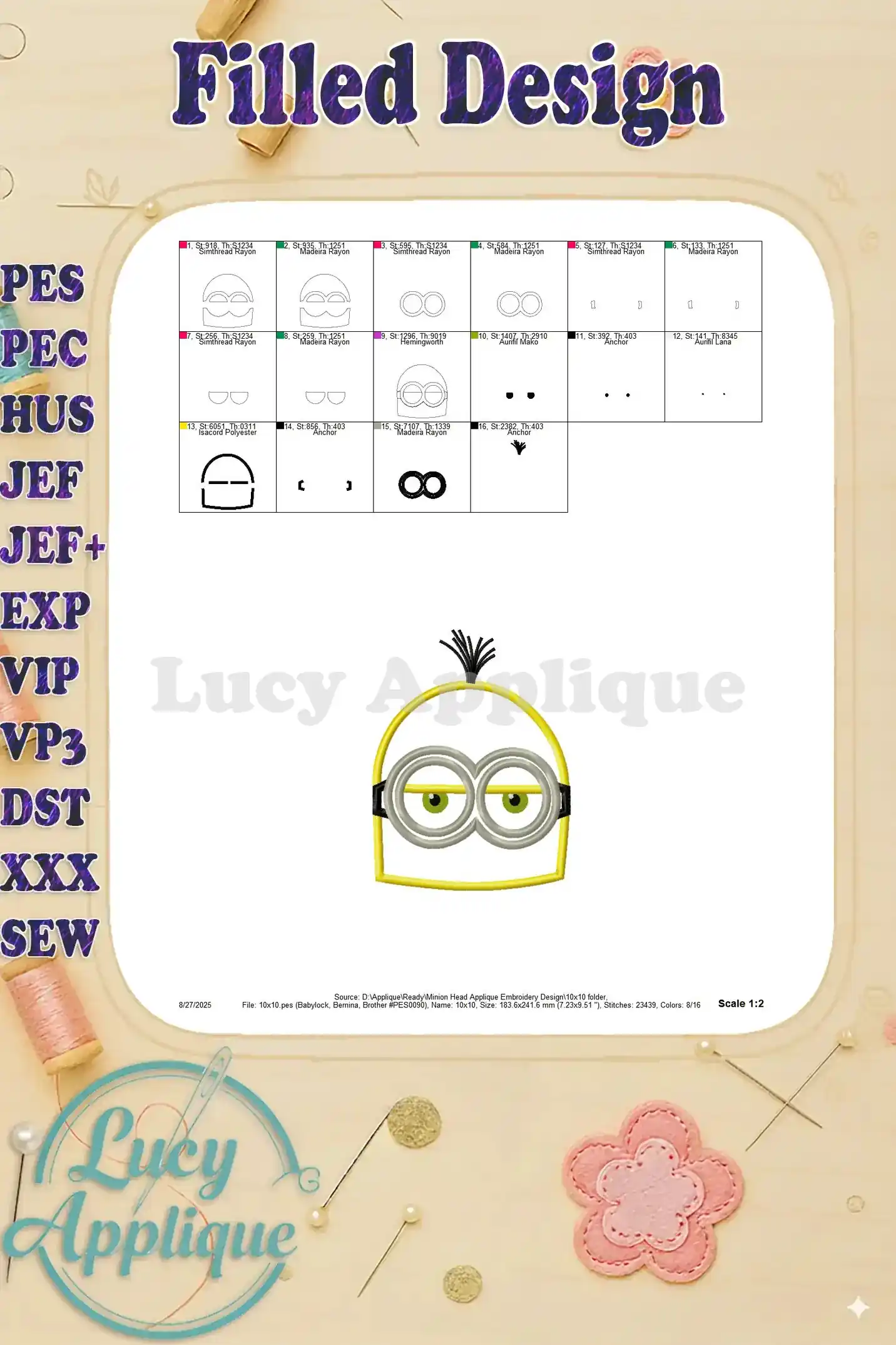 Minion Head Applique Embroidery Design – Instant Download