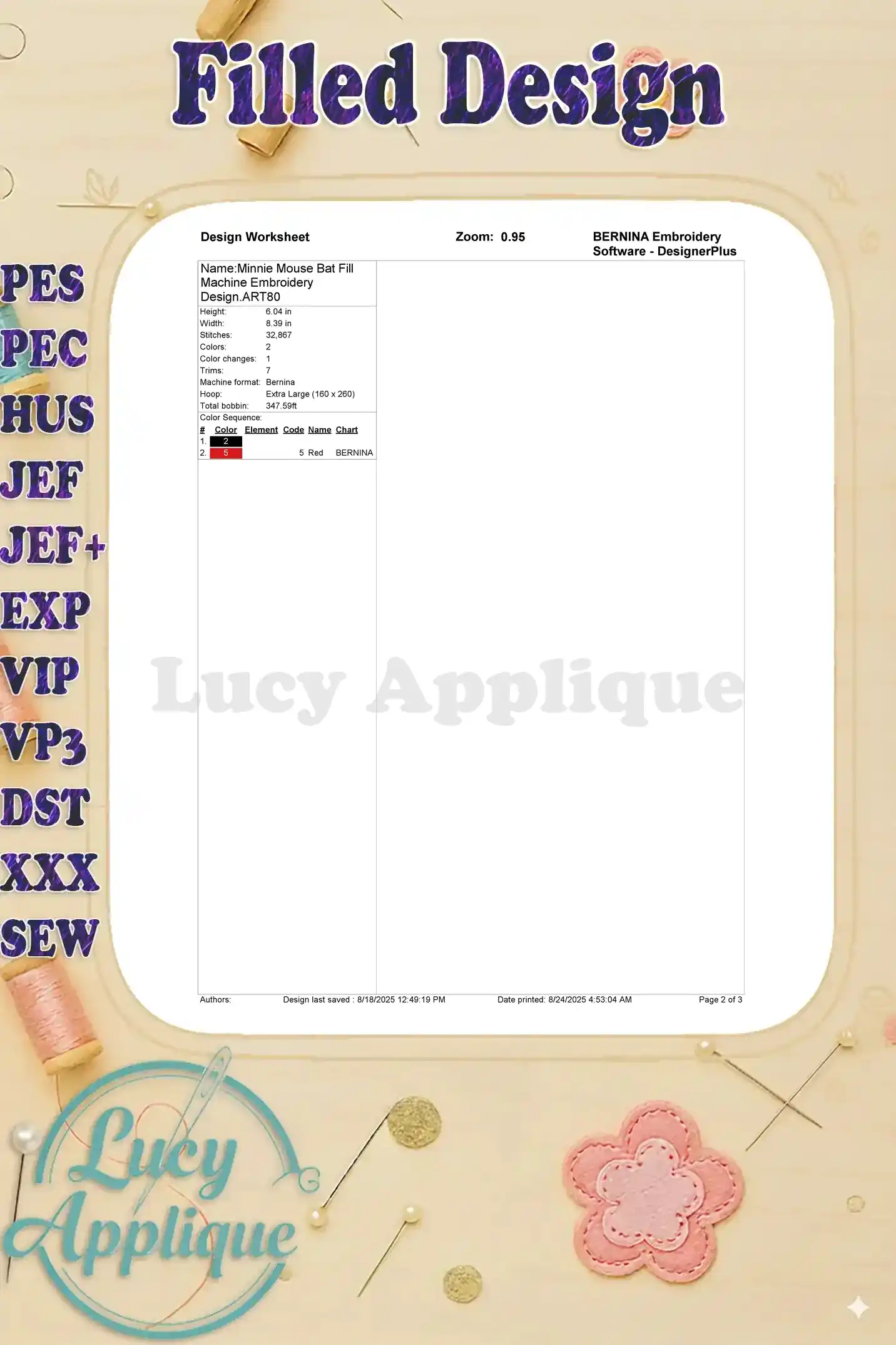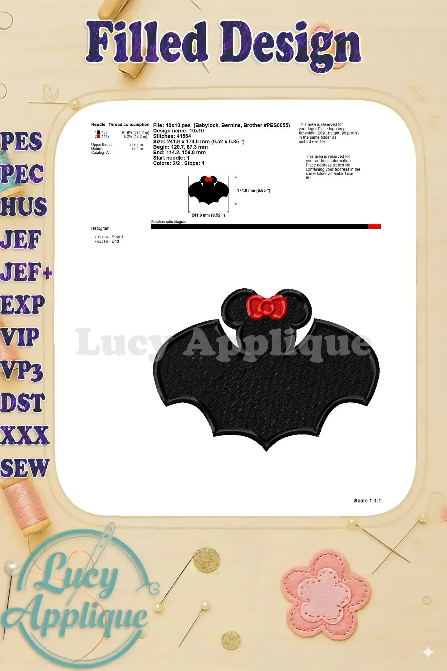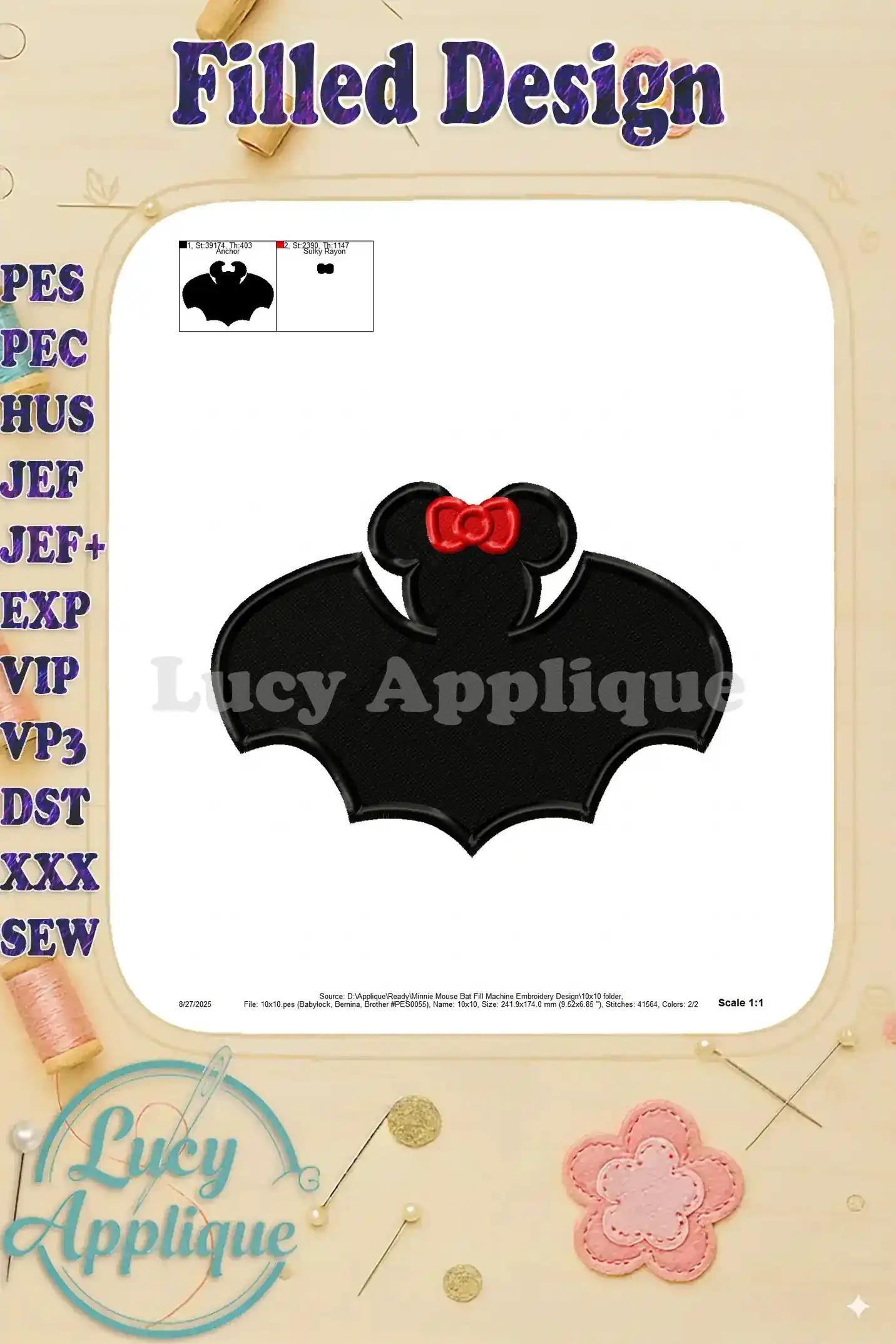 Minnie Mouse Bat Fill Machine Embroidery Design – Instant Download