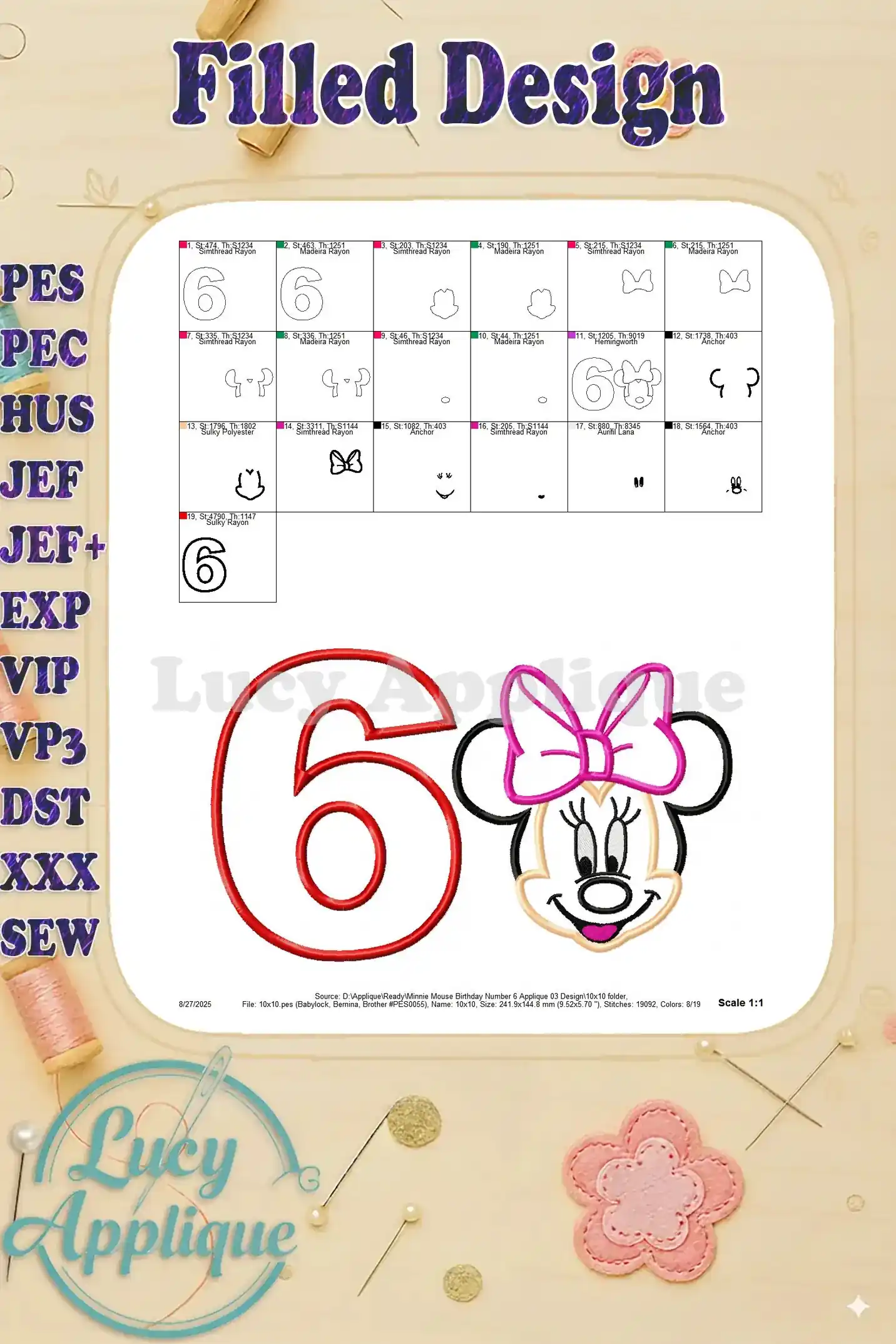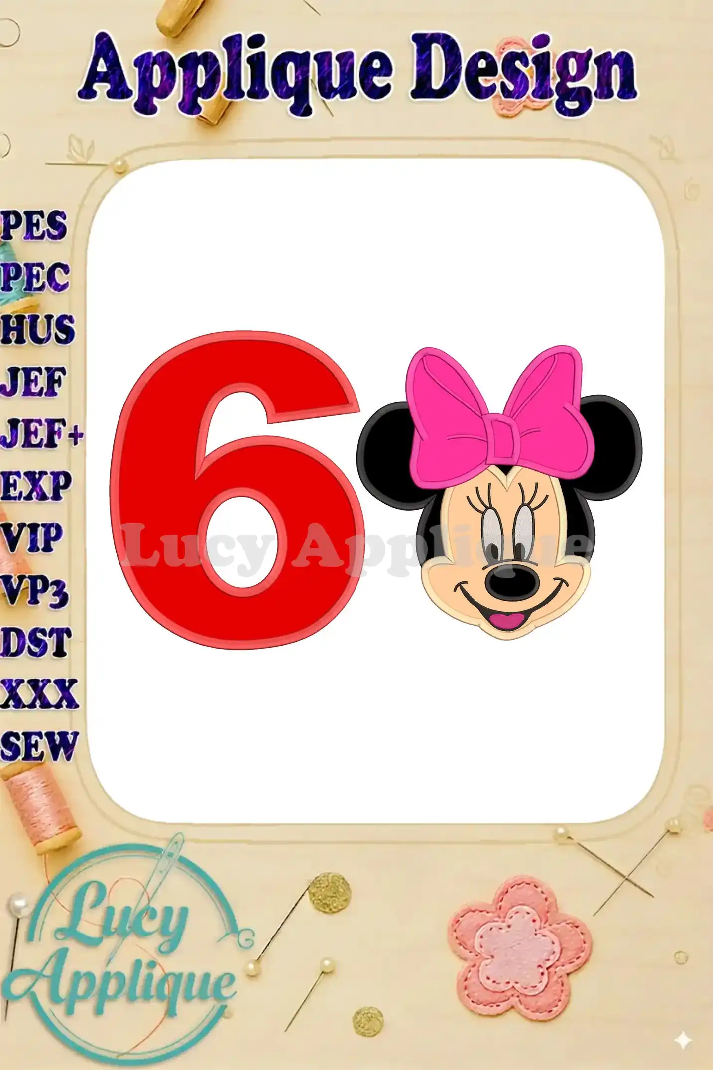 Minnie Mouse Birthday Number 6 Applique 03 Design – Instant Download