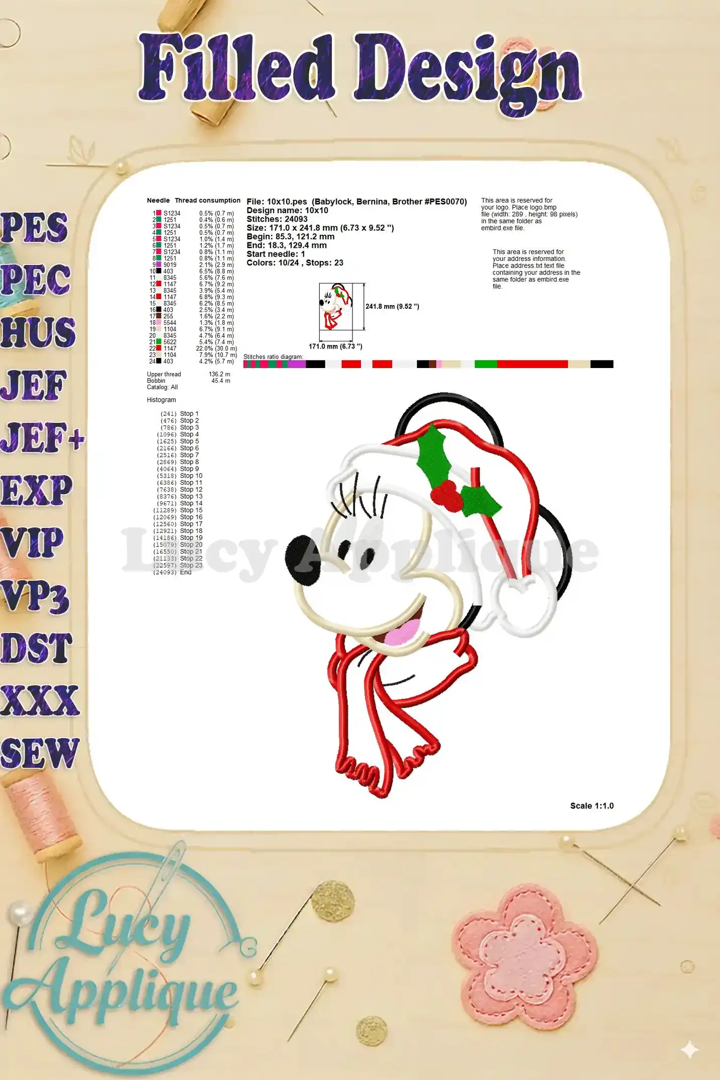 Minnie Mouse Christmas Applique Design 01 – Instant Download
