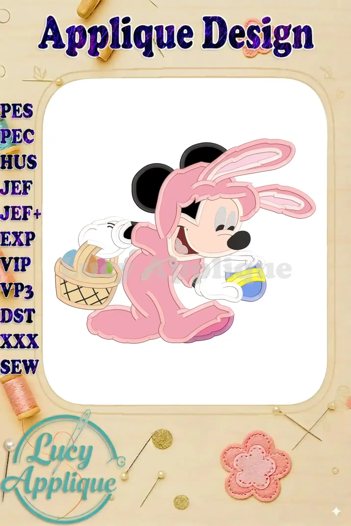 Minnie Mouse Easter Bunny Ears Applique Design – Instant Download